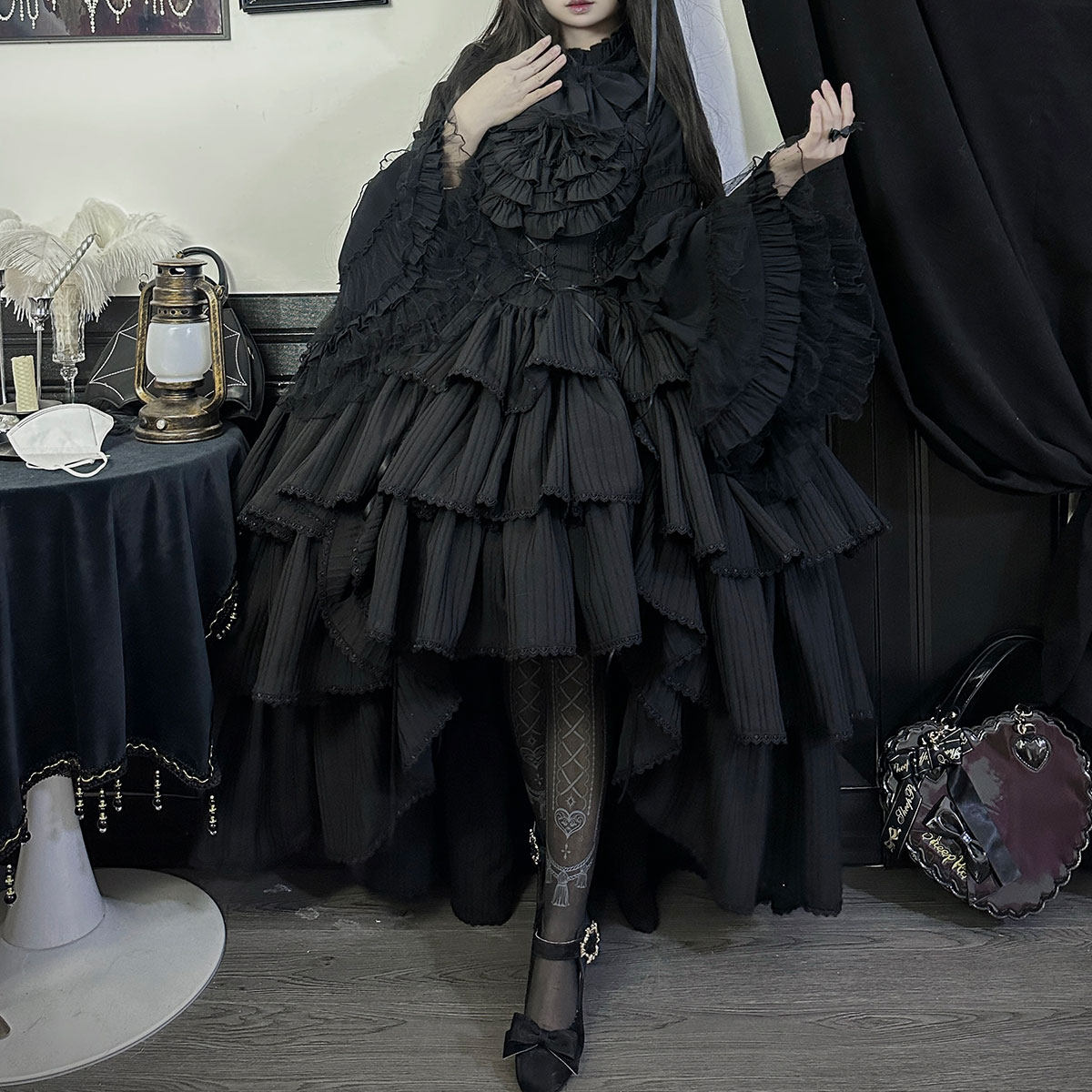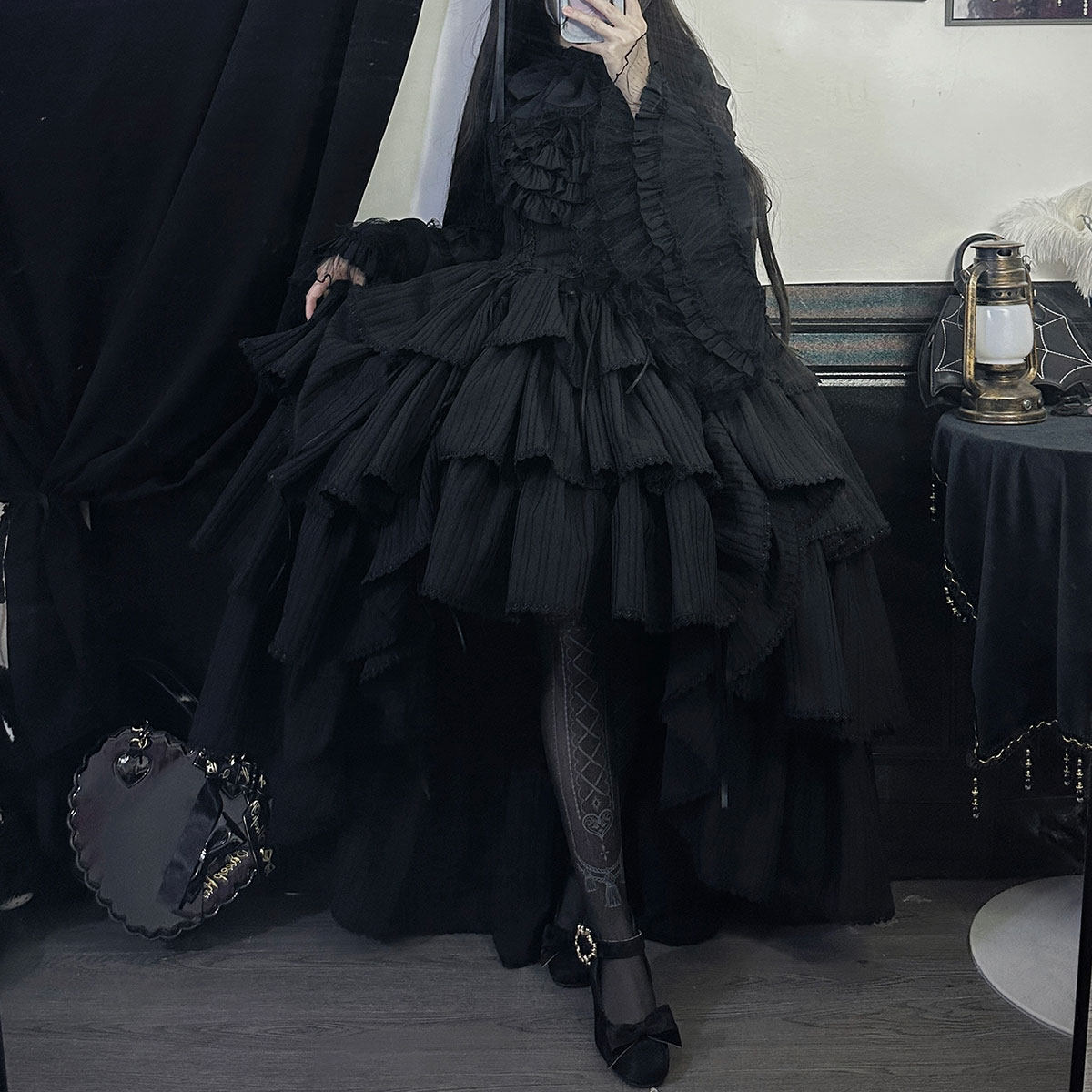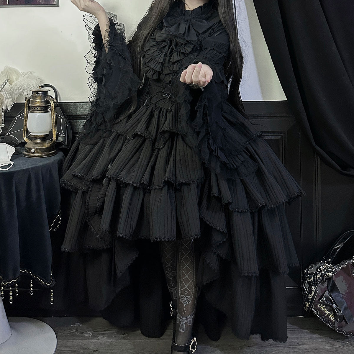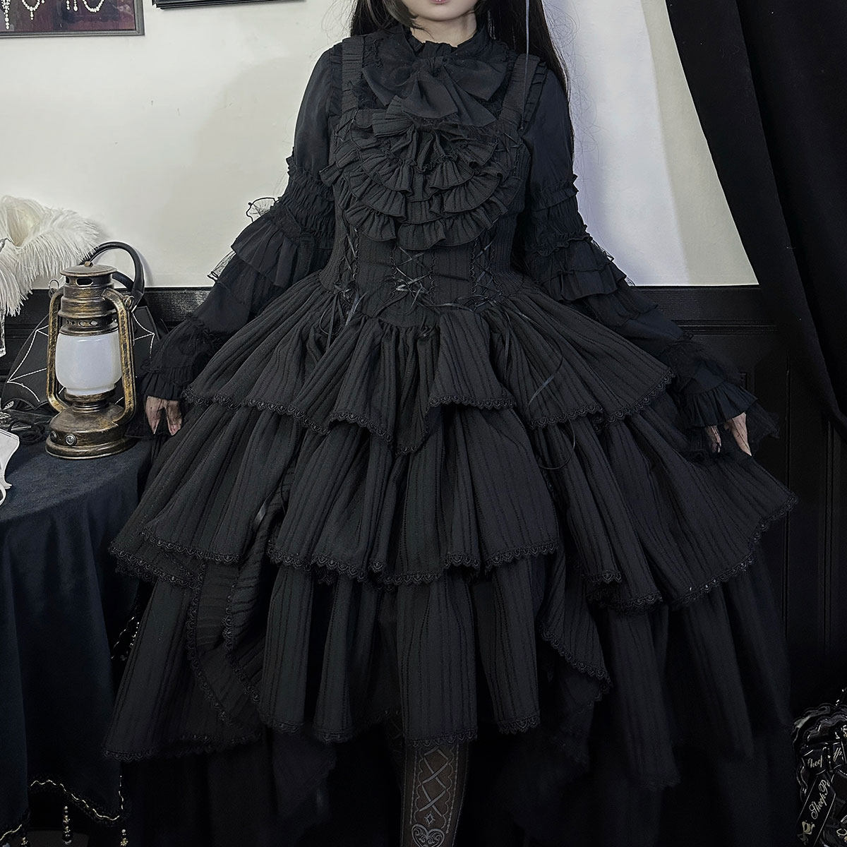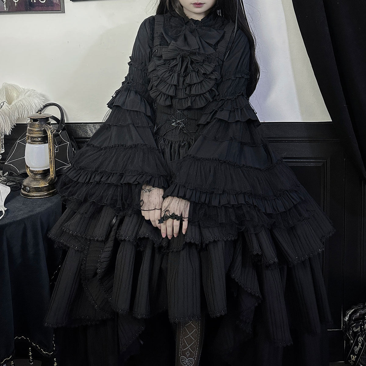 收藏集赞 夜宴回廊 哥特风lolita黑麻麻不规则蛋糕裙JSK+衬衫分体