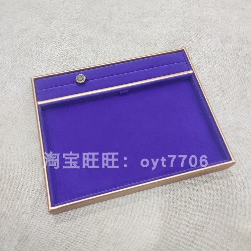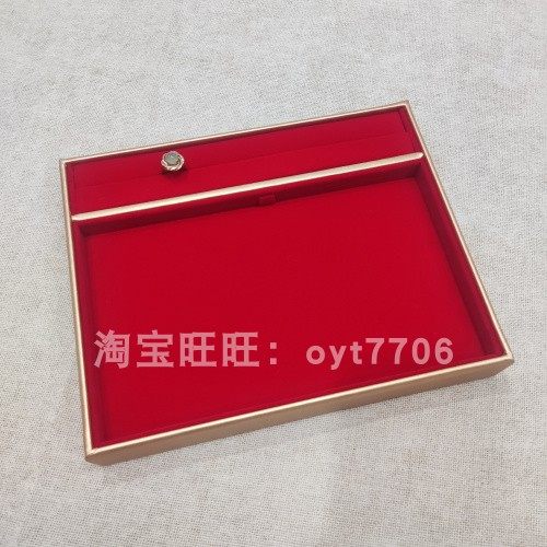 金色PU边多色绒布带戒指槽珠宝首饰饰品展示托盘拍摄背景展示道具