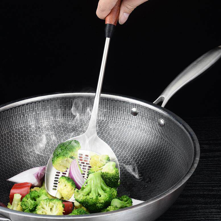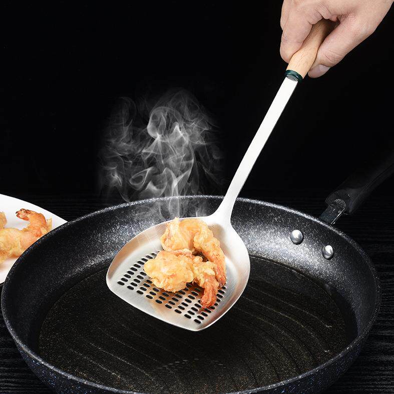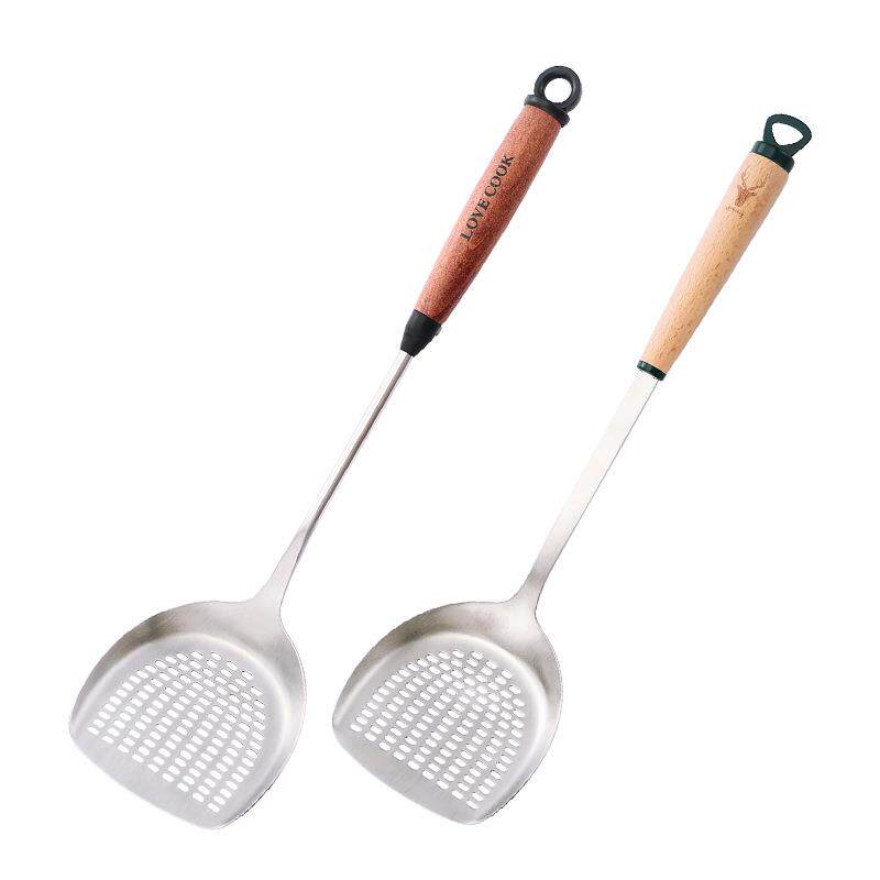 304不锈钢锅铲煎铲油炸捞勺加长木柄漏铲家用厨房用具烹饪多用铲