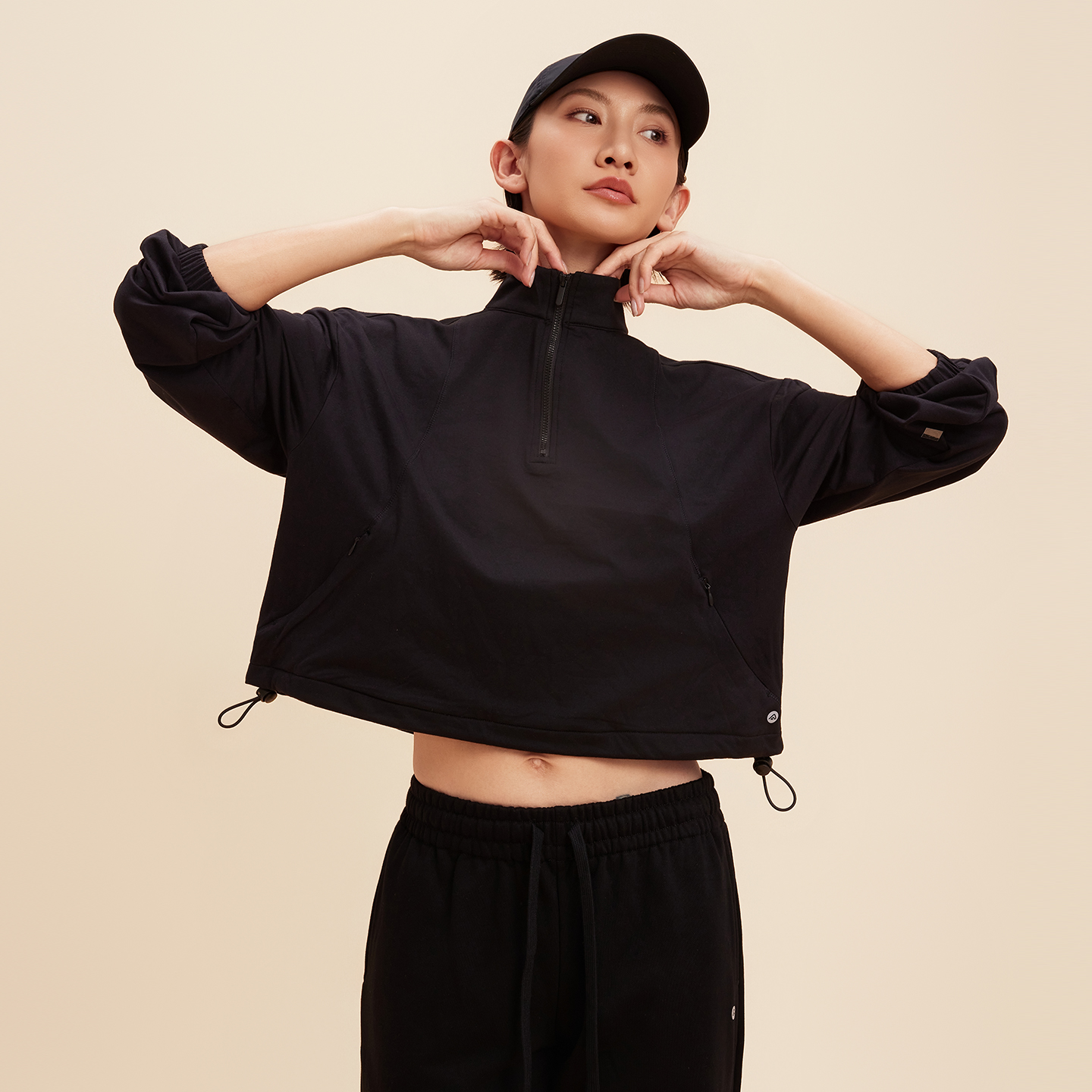 annerun立领运动上衣长袖薄绒保暖卫衣女春秋休闲健身服瑜伽服装