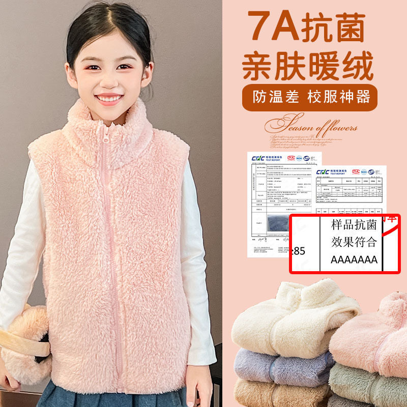 优质羊羔绒马甲儿童立领保暖背心宽松无袖外套冬季摇粒绒马甲秋冬