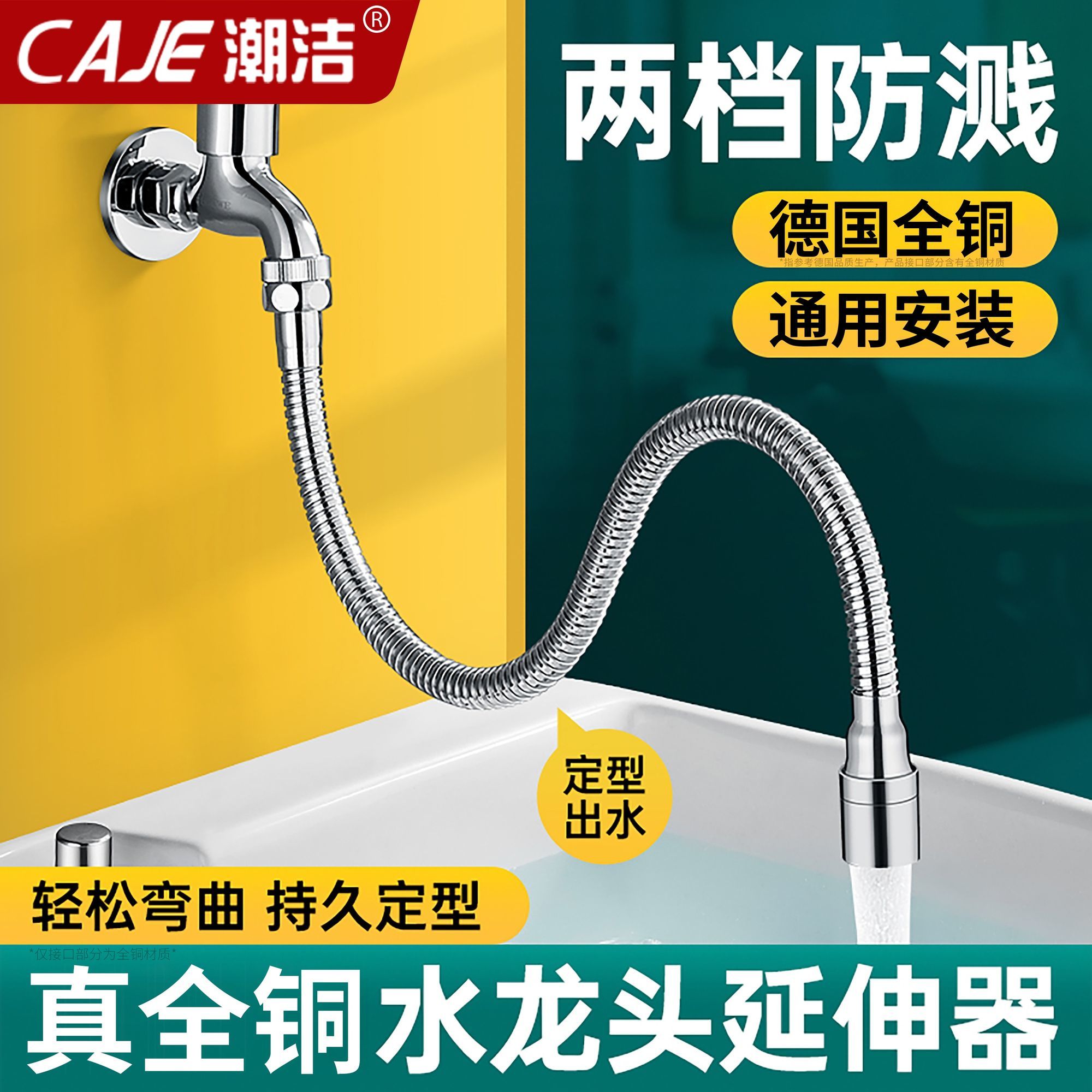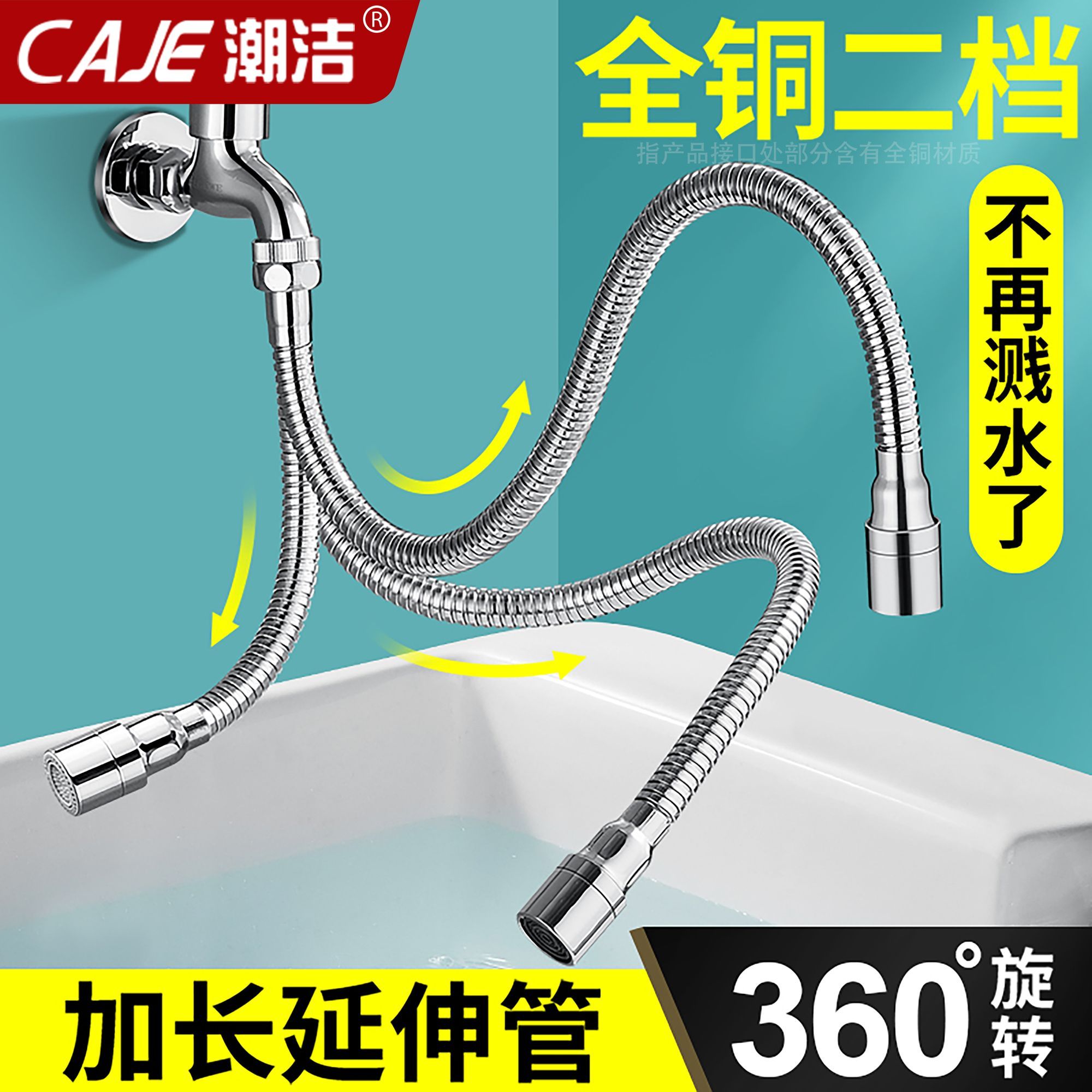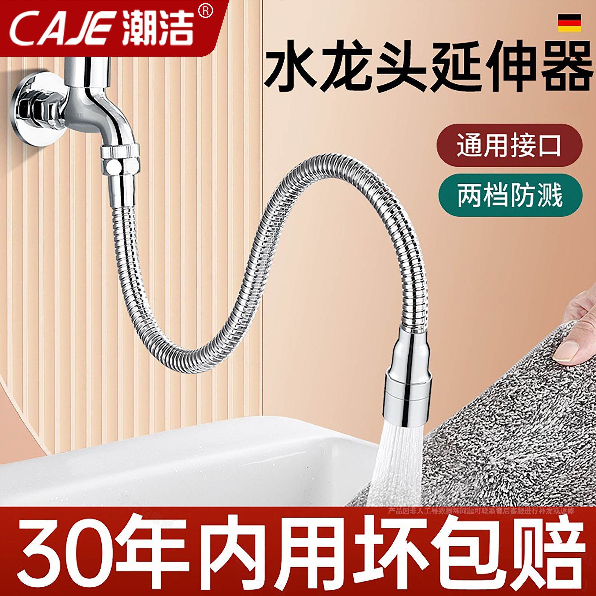 潮洁水龙头延伸管万向旋转防溅延伸器接龙头不锈钢加长水管神器