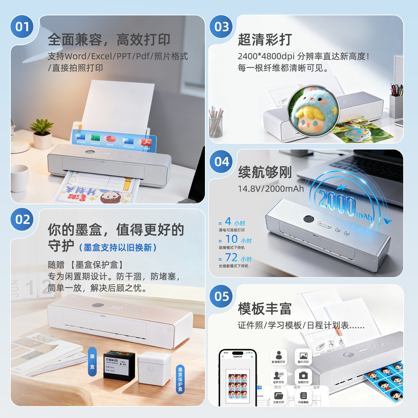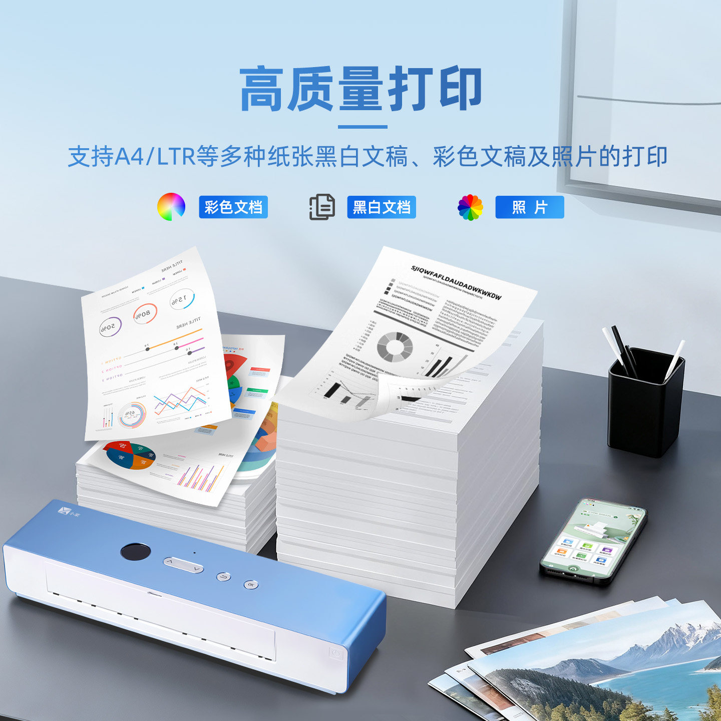小篆家用彩色喷墨打印机便捷式照片文件A4小型家用可连手机无线WiFi学生家庭用多功能一体打印机