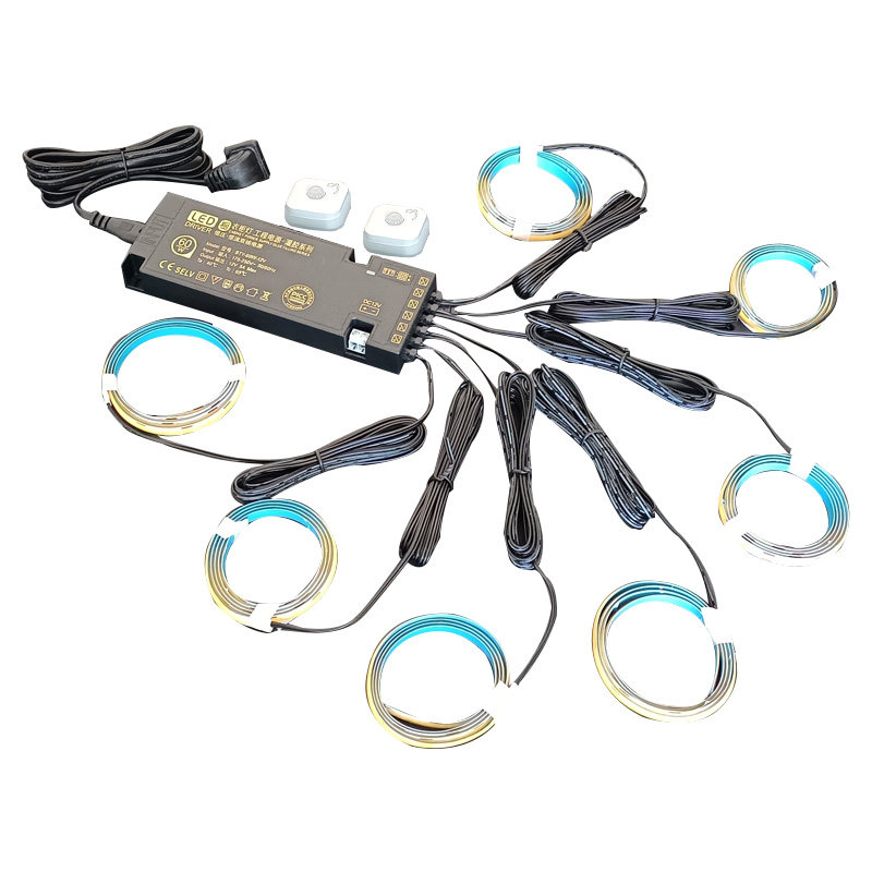 智能橱柜手办展示柜子酒柜衣柜书柜感应cob免开槽led灯条黑色电线