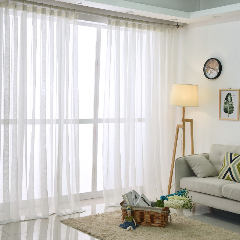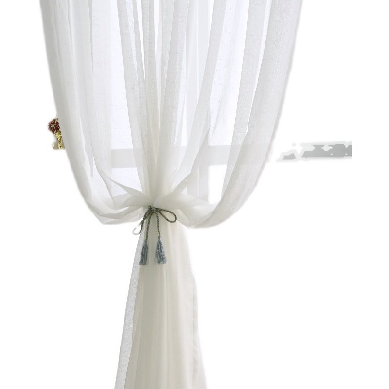 简约现代纯色十字麻纱窗帘面料特价卧室客厅阳台飘窗纯白纱帘布料