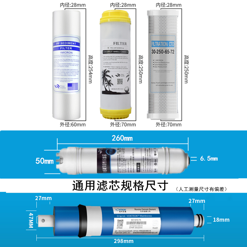 反渗透RO膜滤芯直饮水机通用75G600G纯水机家用净水器10寸P棉滤芯