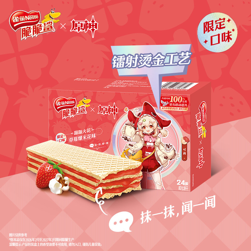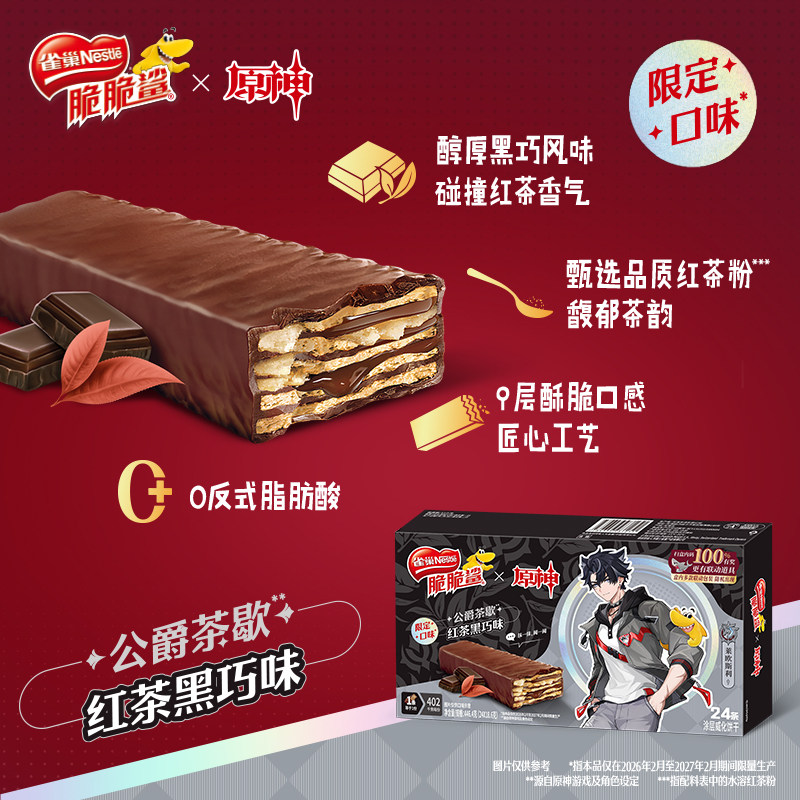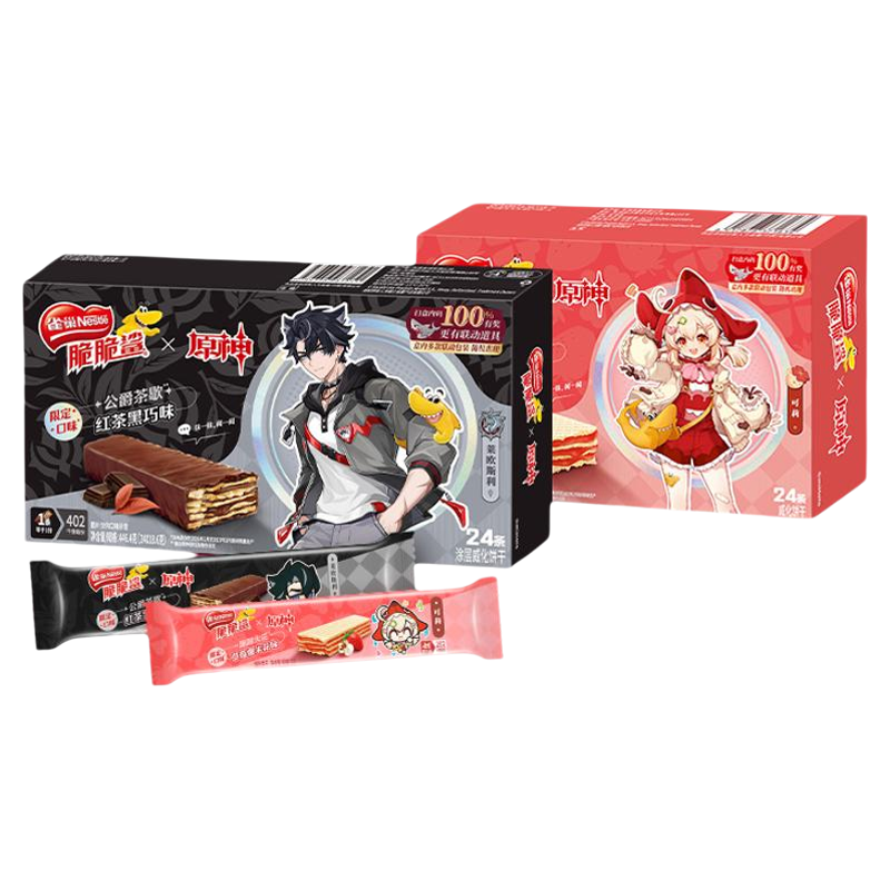 【原神联名】雀巢脆脆鲨红茶黑巧草莓味涂层威化饼干零食旗舰店