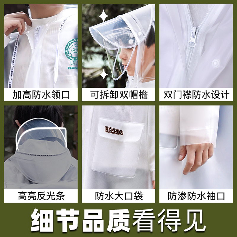 牧萌儿童雨衣男童初中小学生女童带书包位轻便防水全身中大童雨披