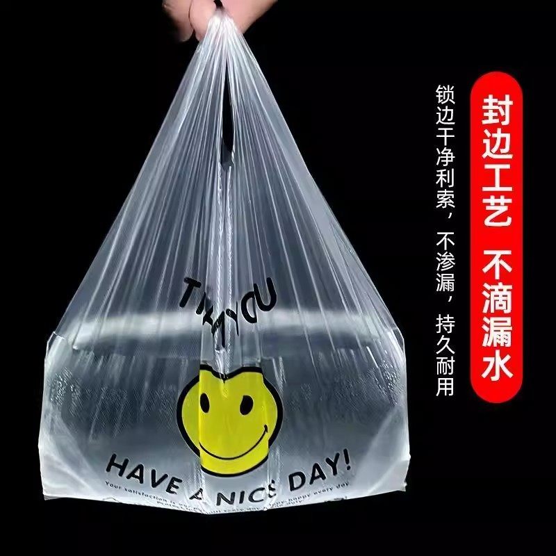 加厚笑脸塑料袋礼品袋一次性外卖打包袋透明方便袋家用背心垃圾袋