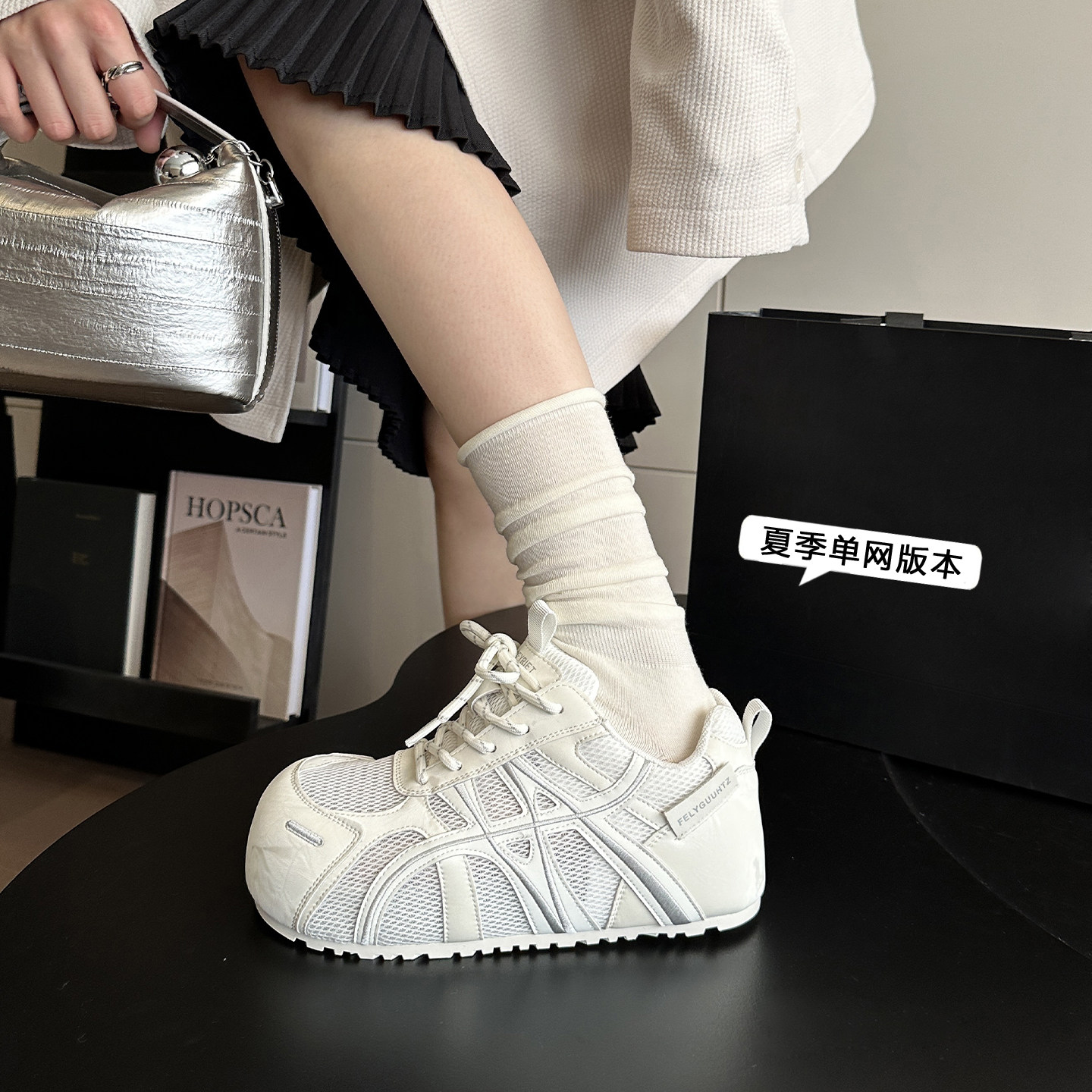 WSWS|国潮春季新品真皮内增高厚底大头丑萌小白鞋德训鞋女鞋板鞋