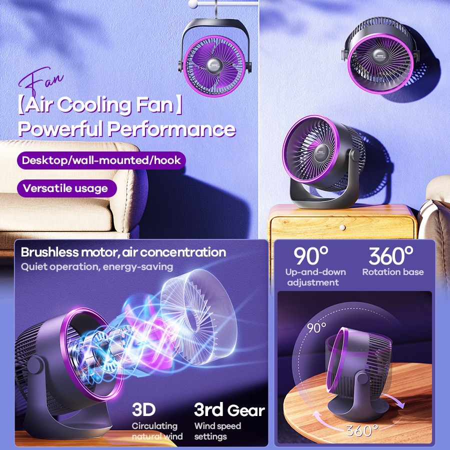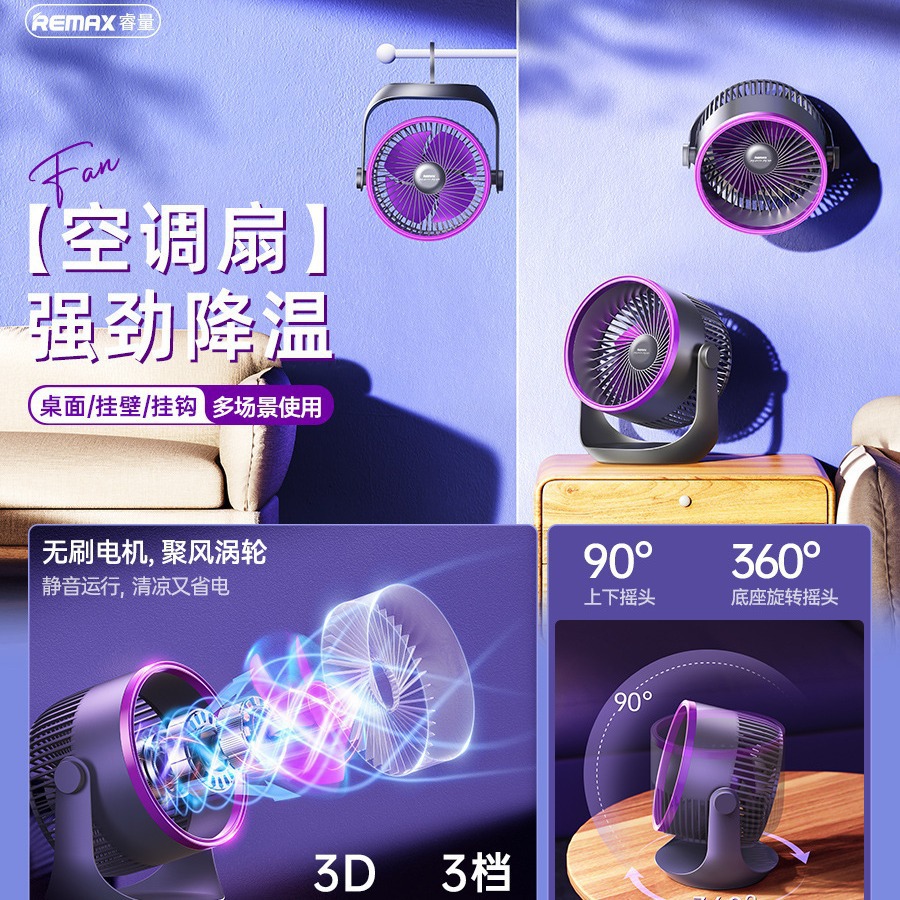 REMAX风泽桌面台式循环风扇长续航大风力空调扇无刷USB迷你电风扇