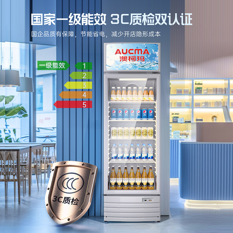 澳柯玛冷藏展示柜啤酒保鲜饮料柜超市商用冰箱立式冷柜一级328升