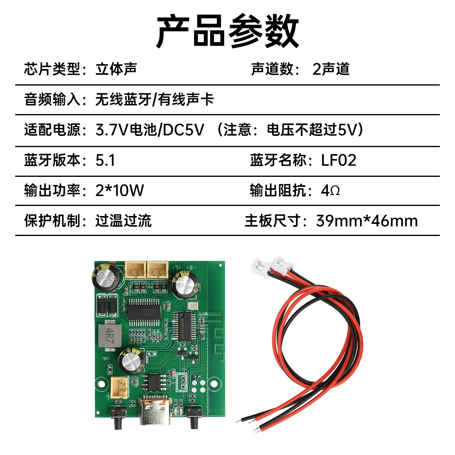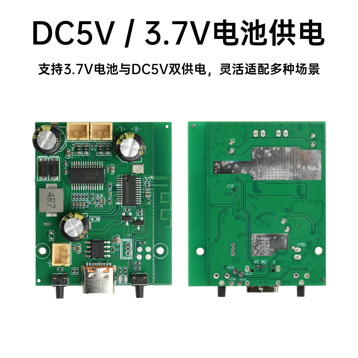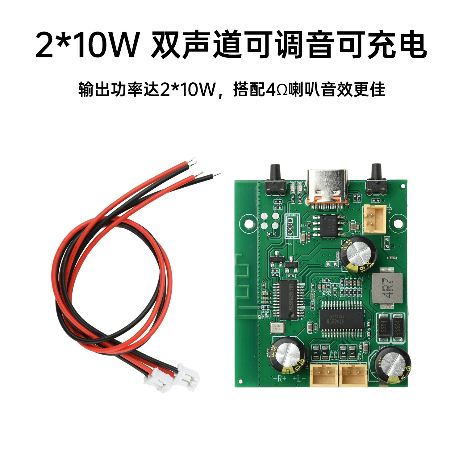 DC5V/3.7V电池供电TWS立体声蓝牙功放板2*10W双声道可调音可充电
