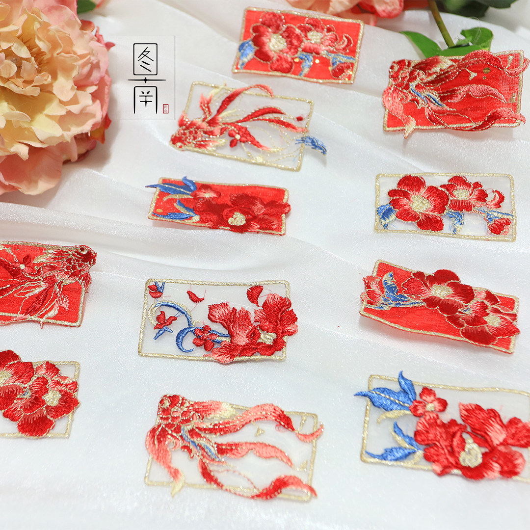 绣花发夹布贴精美汉服旗袍古风补丁破洞装饰品居家布艺绣片diy