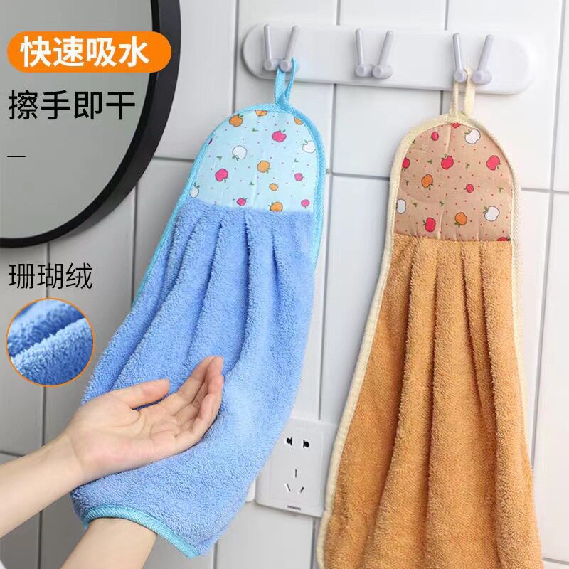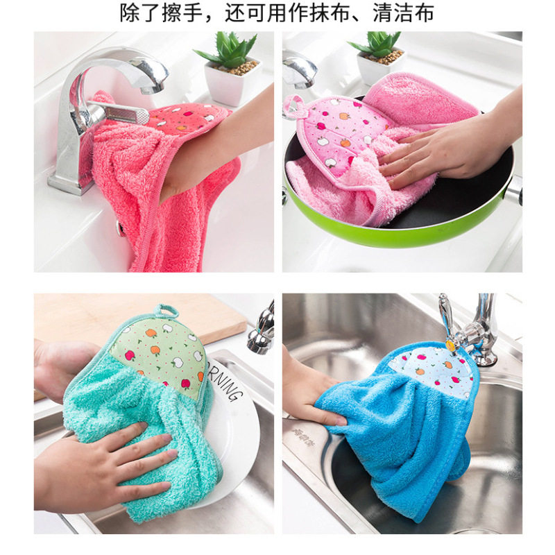 加厚挂式吸水擦手巾厨房卫生间儿童家用可爱擦手巾毛巾抹布清洁巾