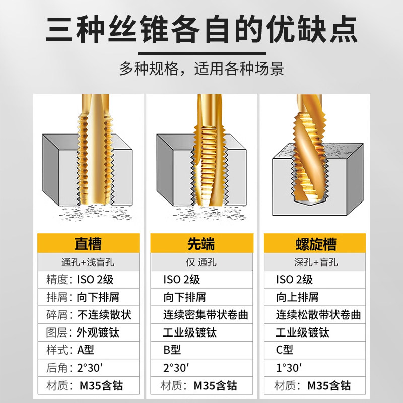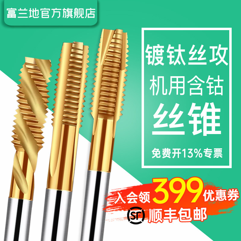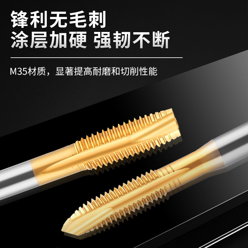 富兰地6542机用丝锥镀钛含钴丝攻M4M6M8直槽先端攻丝螺旋不锈钢用