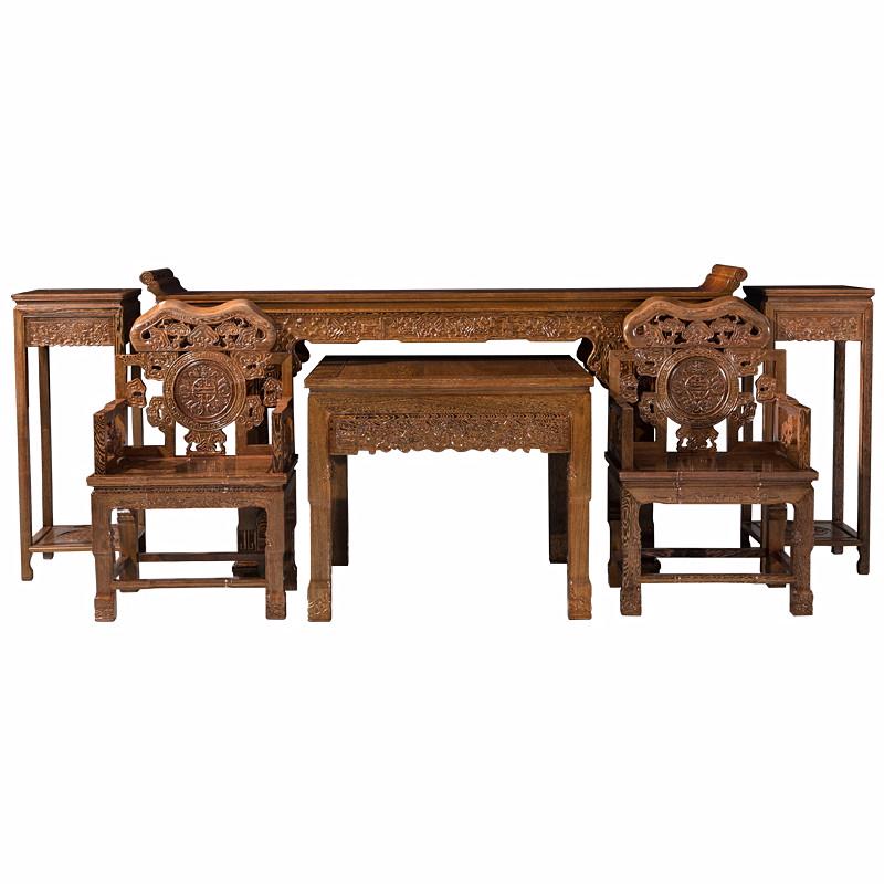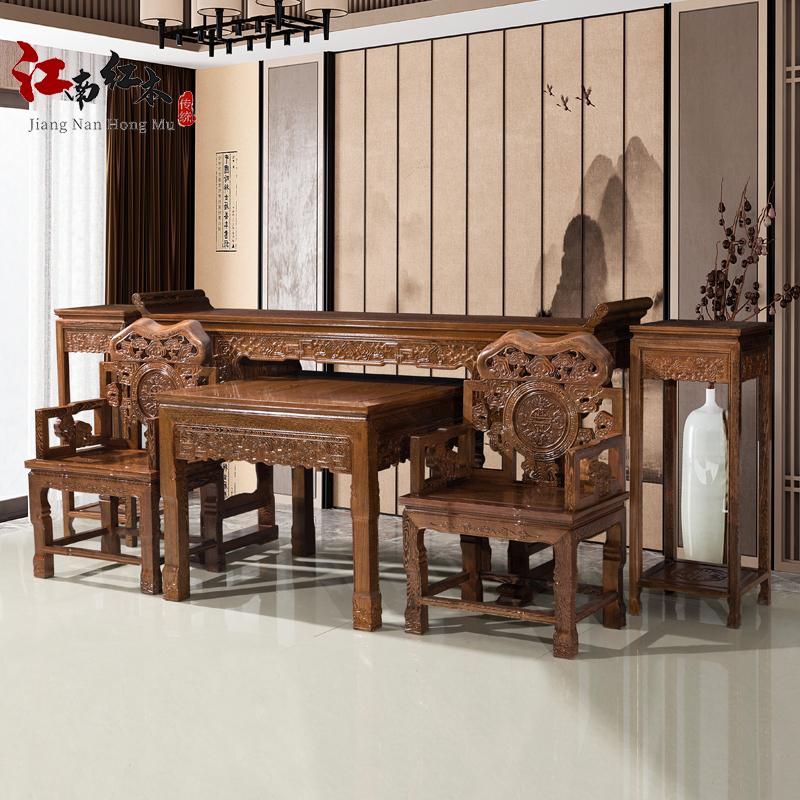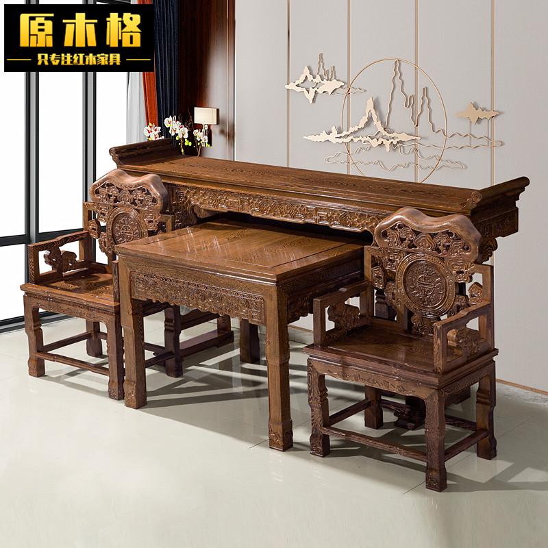红木鸡翅木中堂实木中式翘头案神台条案农村堂屋供桌太师椅八仙桌