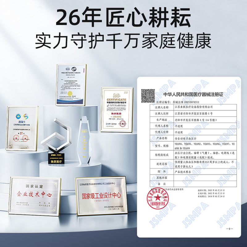 鱼跃YE692臂筒式电子血压计房颤血压测量仪家用高精准正品测压仪