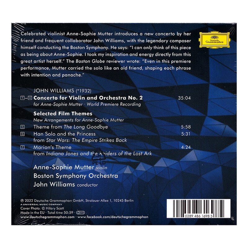 【原装进口】穆特 威廉姆斯 第2号小提琴协奏曲&电影主题曲CD唱片