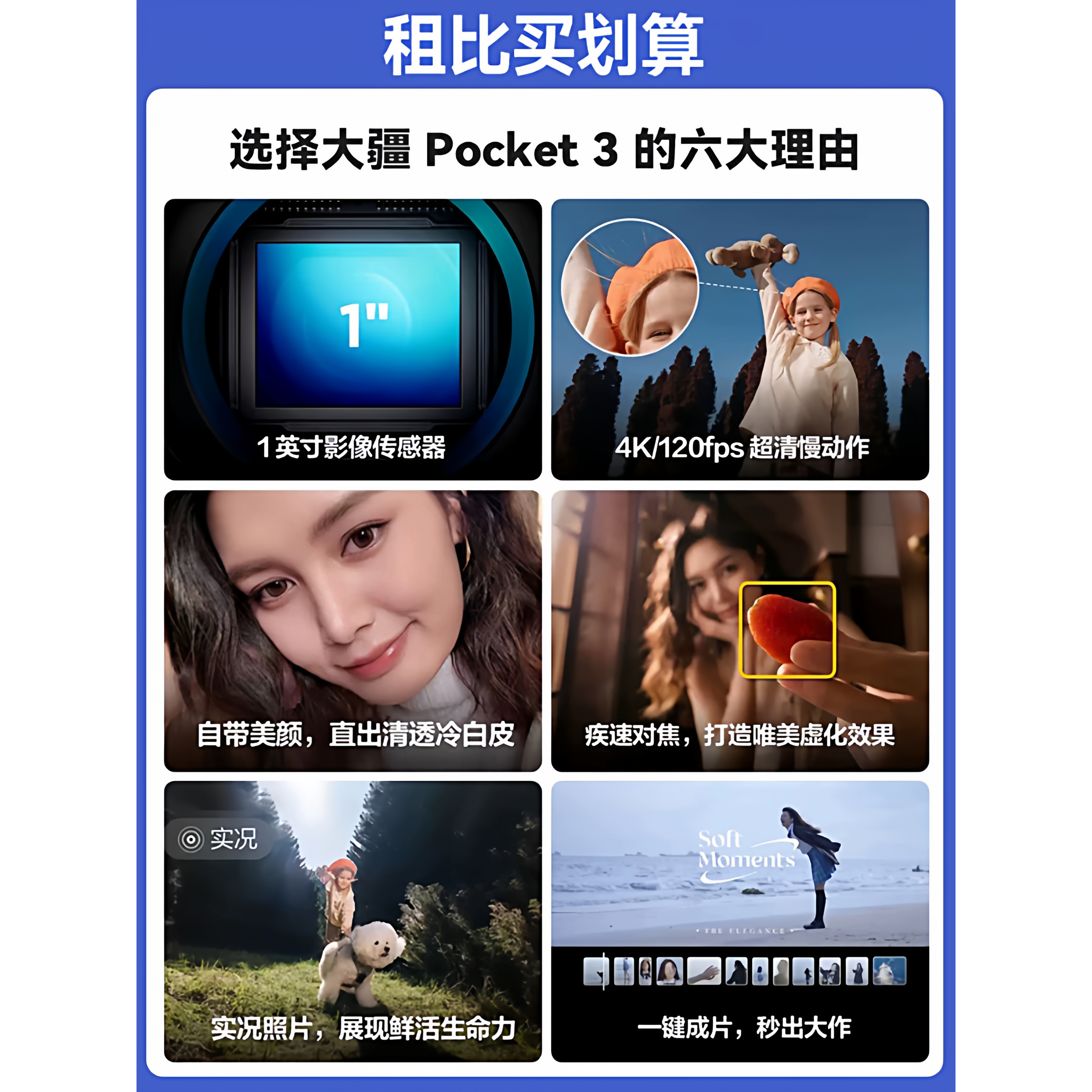租DJI/大疆 osmo pocket3 口袋云台相机租赁手持旅行运动拍摄神器