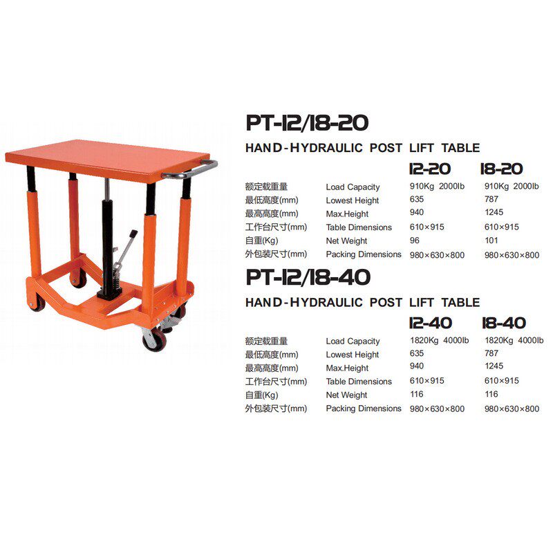 手动液压柱式升降台液压平台车柱式可移动升降平台车升降工具车