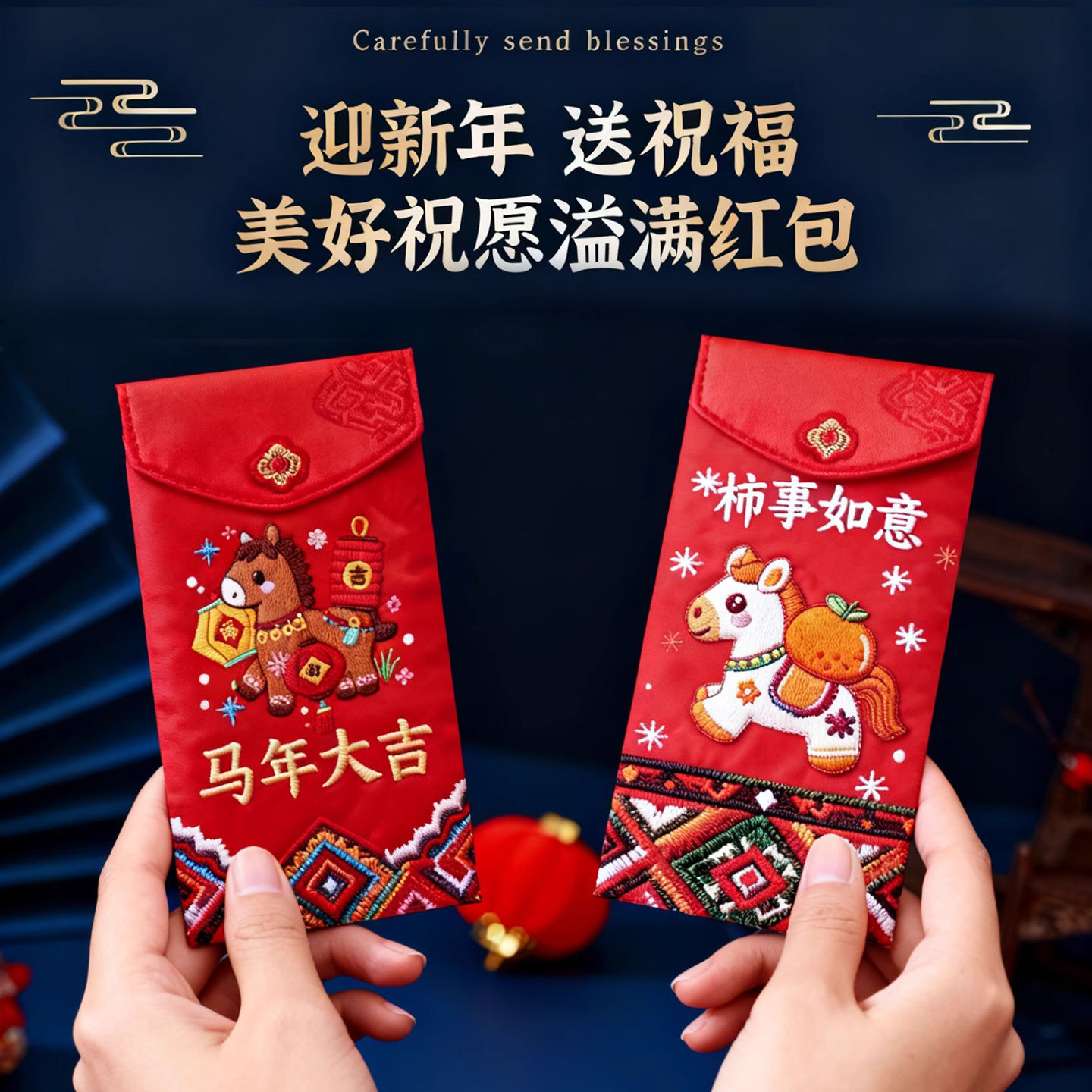 马年红包2026卡通手绘福马刺绣压岁包创意结婚新年过年专用利是封