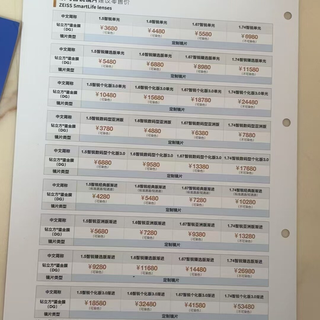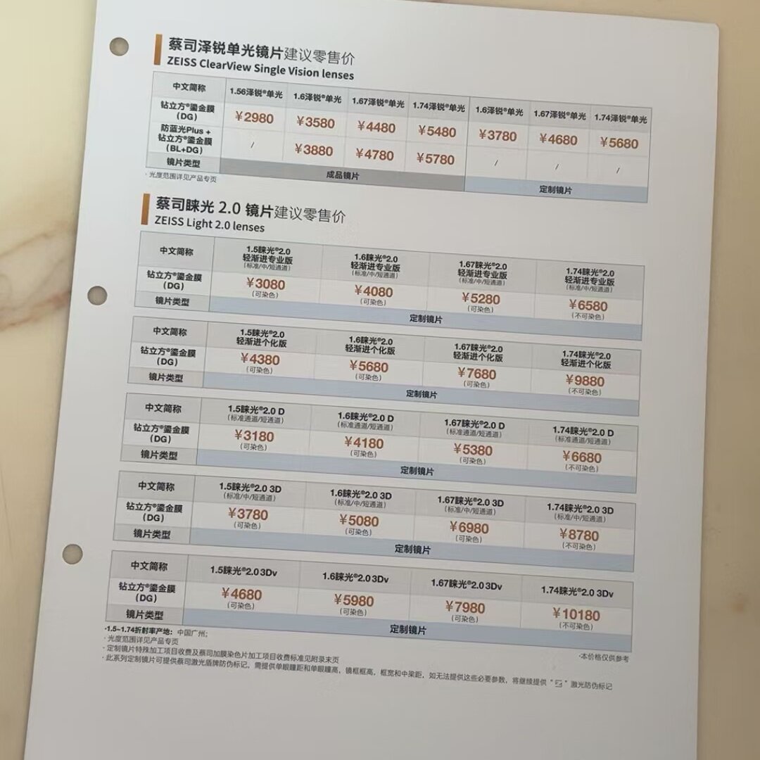 2025蔡司最新系列鎏金膜价格单页