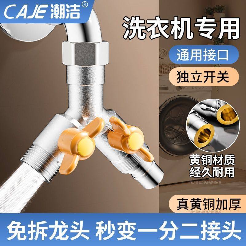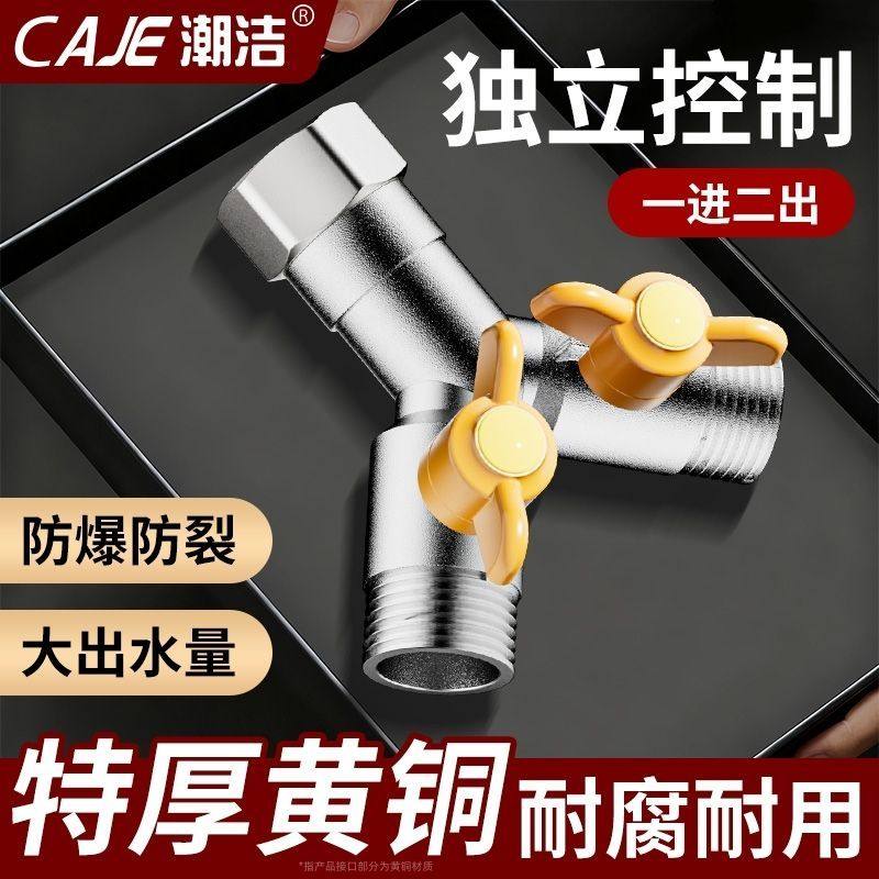 潮洁洗衣机水龙头三通进水管厨房水龙头专用转接头进水口一进二出
