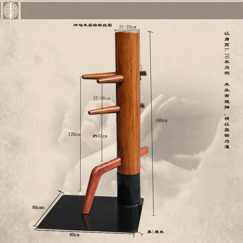 拳头牌木人桩 坤甸木大铁板落地桩 咏春拳桩 一物一图