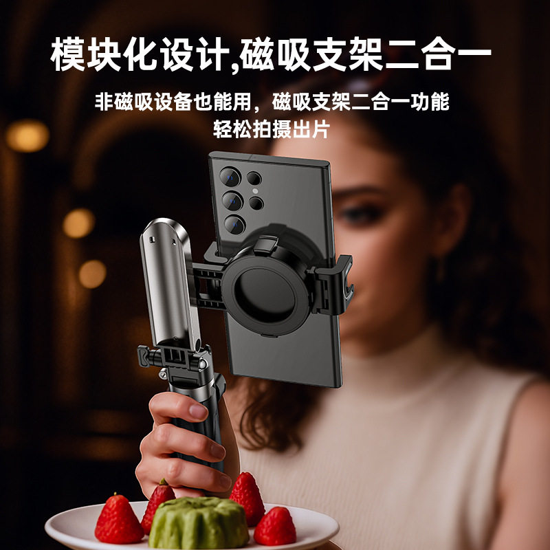 yesido磁吸自拍杆夹子便携旅行迷你伸缩拍照神器跨境自拍杆三脚架
