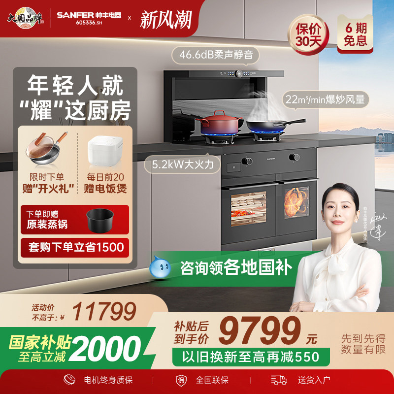 SANFER/帅丰TJ5-8B-90星耀蒸烤独立集成灶家用烟灶联动猛火套装