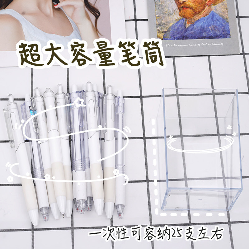 笔筒收纳盒ins风透明筒学生办公亚克力圆形收纳桶笔筒收纳盒文具整理塑料方形亚克力收纳桶大容量可爱化妆刷