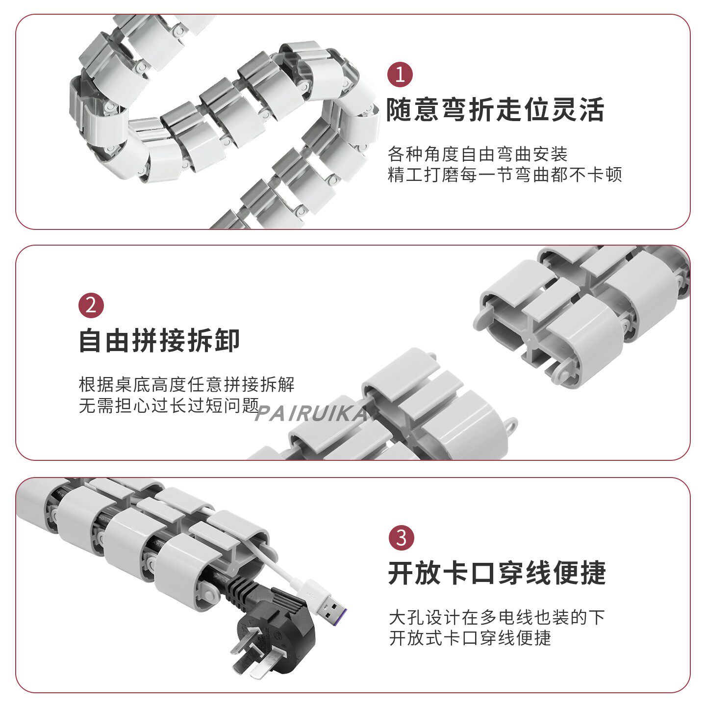电脑桌下理线管电源线收纳理线器升降桌专用蛇形管束线管集线槽