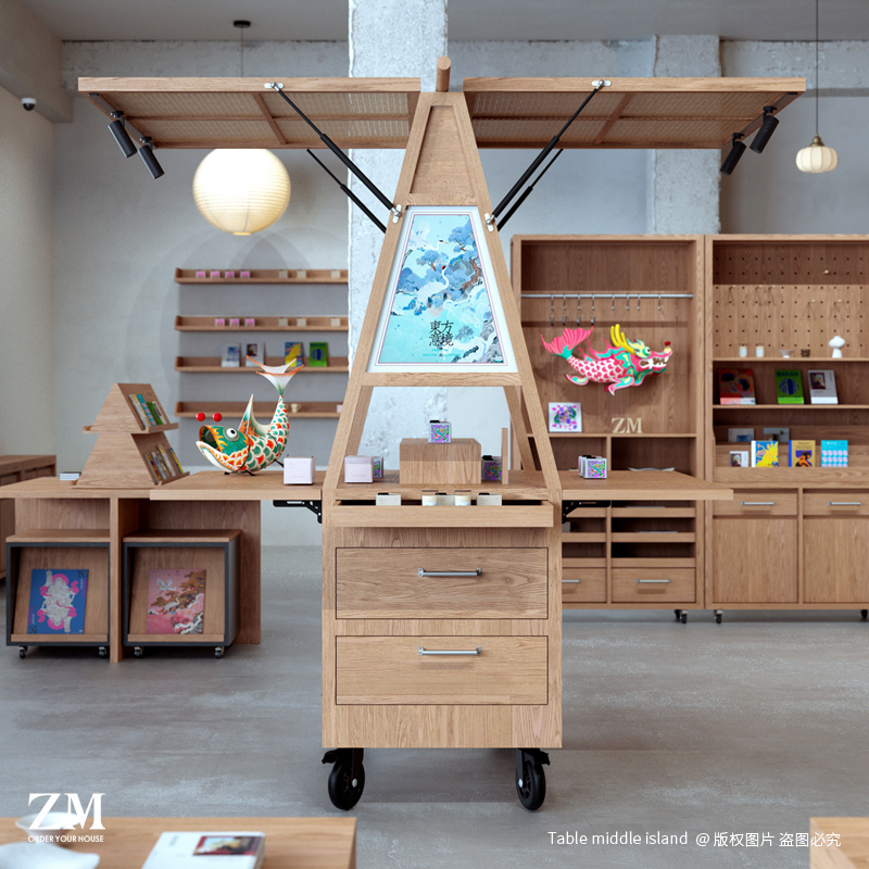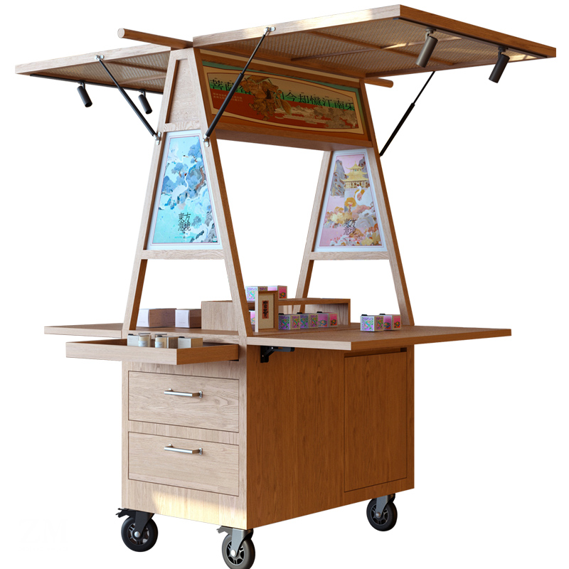 国风货郎车造物展示售卖车文创摊位车旅游特产商品货架非遗灯笼车