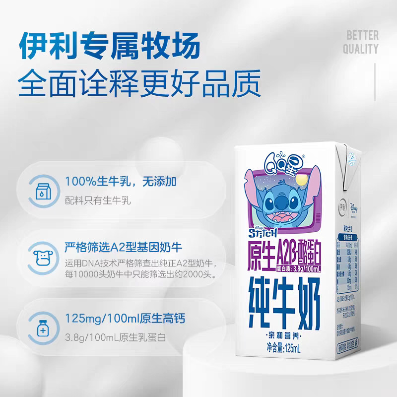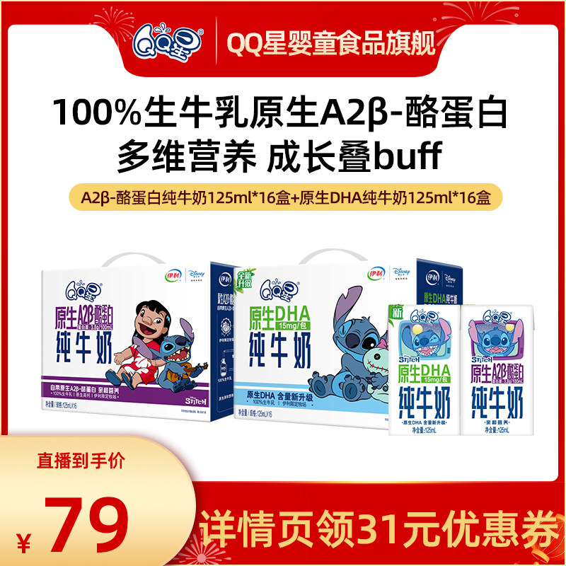 QQ星DHA+A2β酪蛋白纯牛奶 儿童成长牛奶 125ml*16盒*2箱