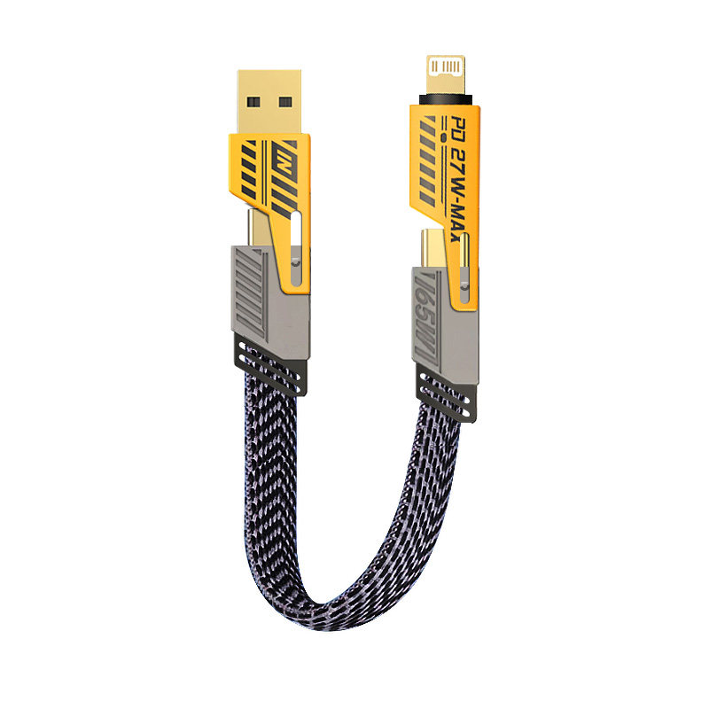 短款四合一数据线65W快充适用华为苹果16iPhone15多功能PD闪充USB手机充电宝短线ctoc口双头typec转lightning