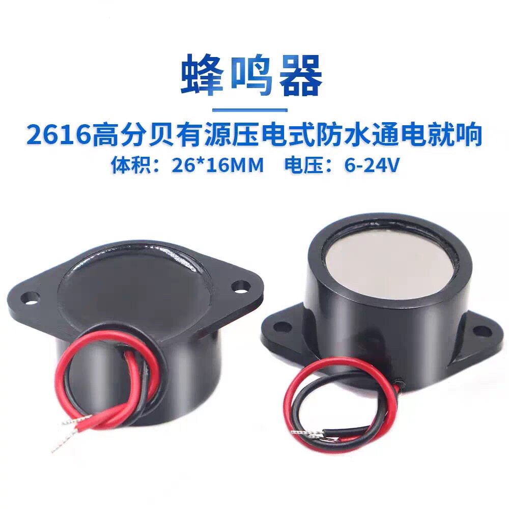 26*16mm有源蜂鸣器3-24V发声器警报器圆形带线黑色IP67防水等级