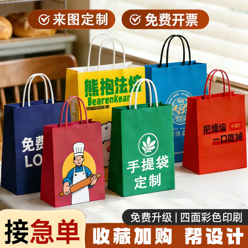 手提袋定制餐饮外卖打包logo广告宣传纸袋设计礼物包装礼品袋定做