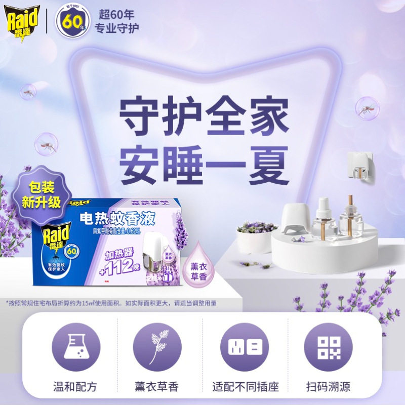 雷达电热蚊香液草本绿茶香艾草香薰衣草香驱蚊液加热器防蚊虫叮咬