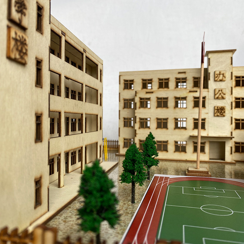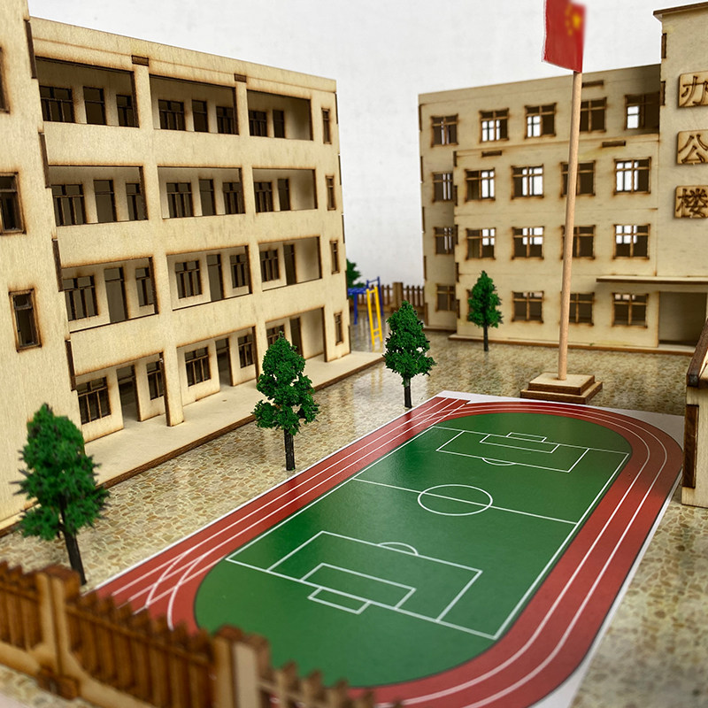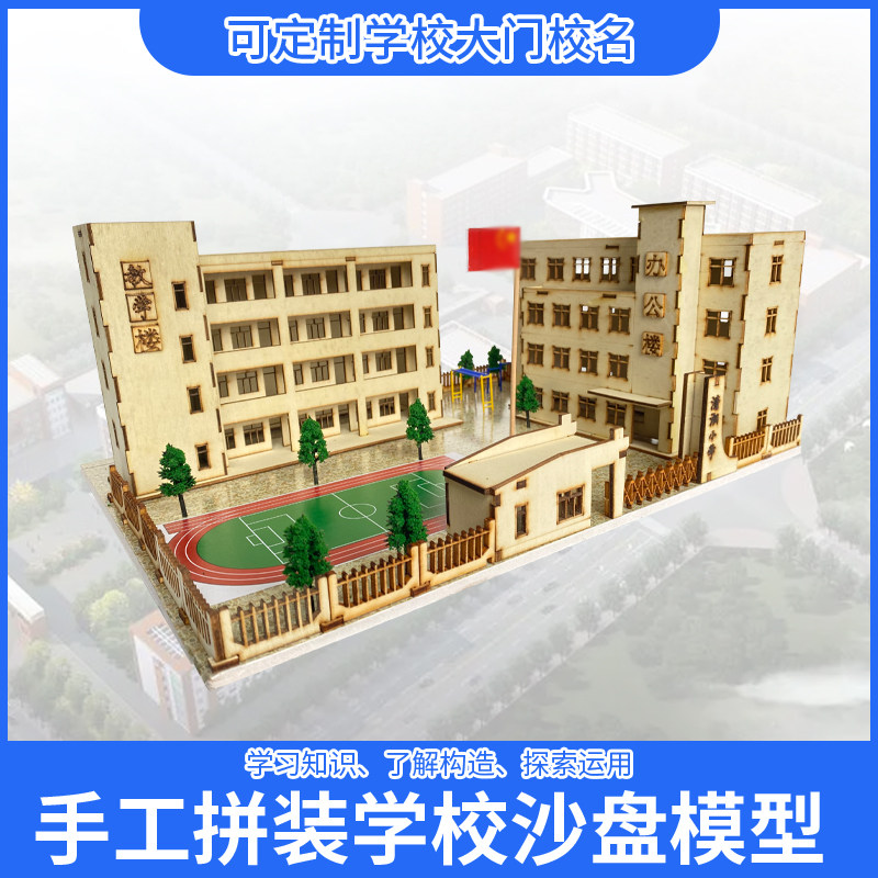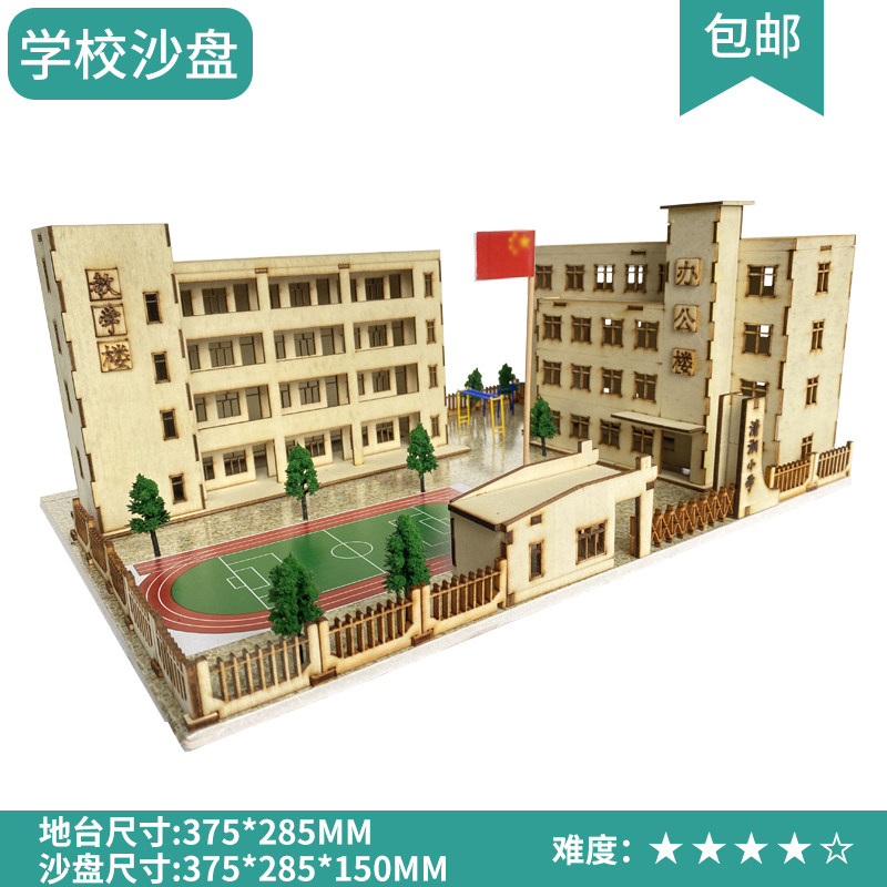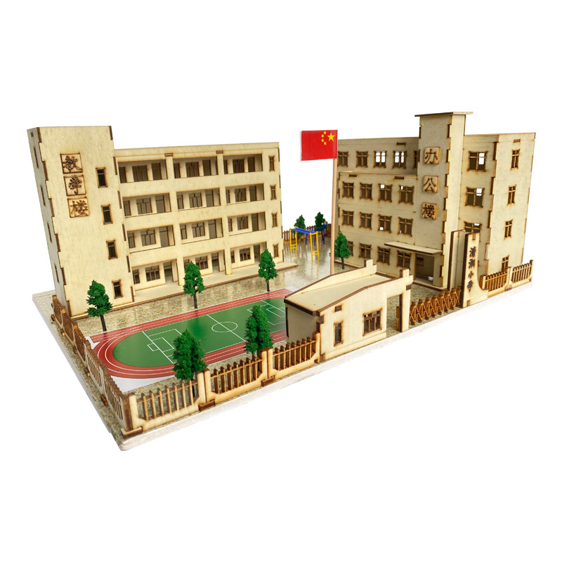 木制手工拼装模型学校沙盘3D激光切割青少年椴木街景房屋摆件配景