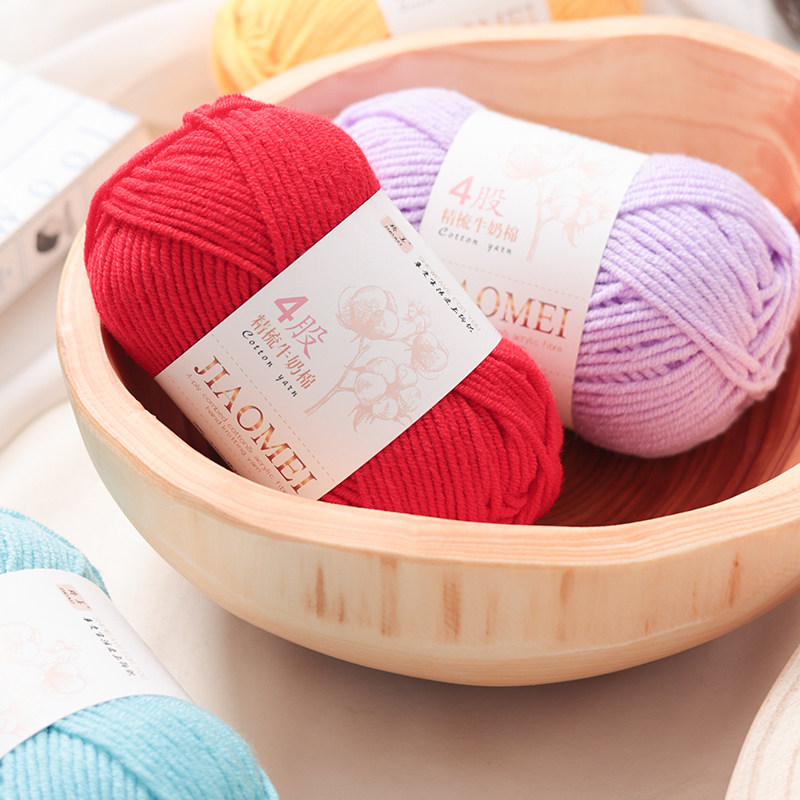 4股精梳牛奶棉毛线团线球手工钩针编织diy玩偶材料包宝宝花束围巾