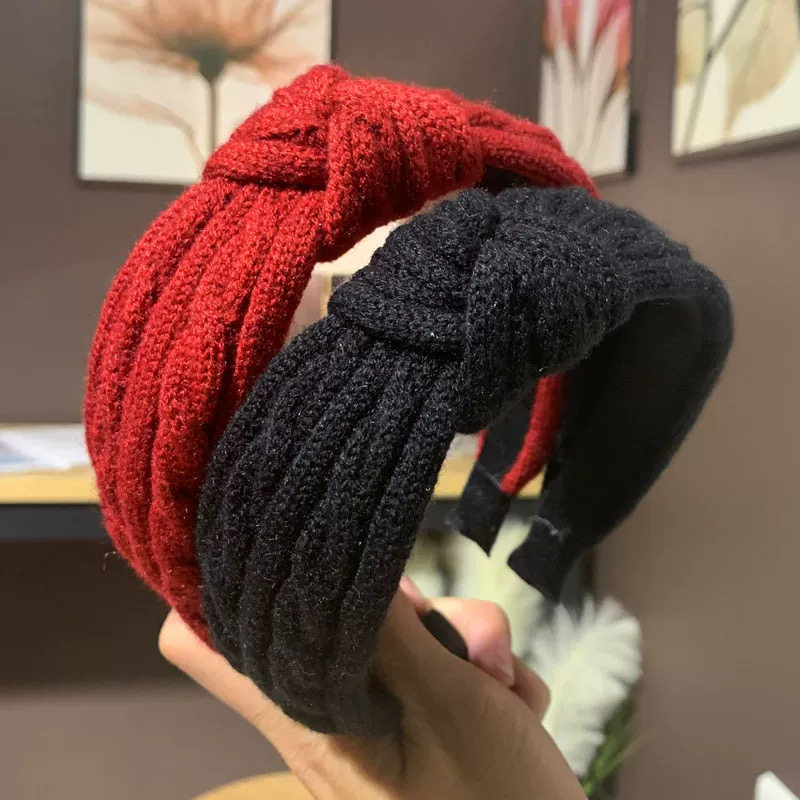 网红毛线发箍韩国秋冬新款毛线编织纯色发卡打结布艺百搭洗脸头窟
