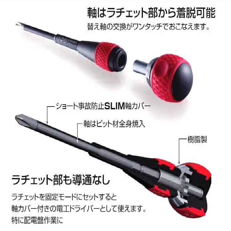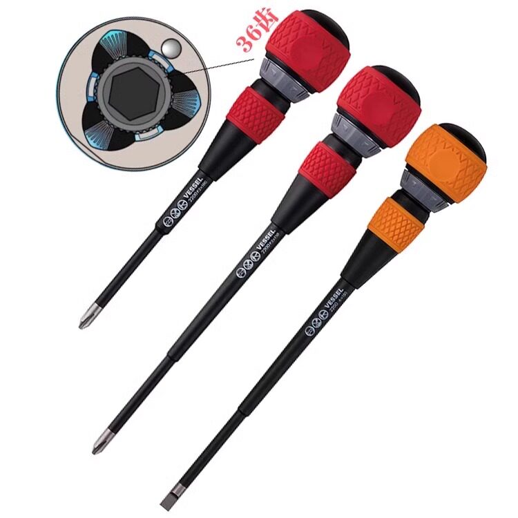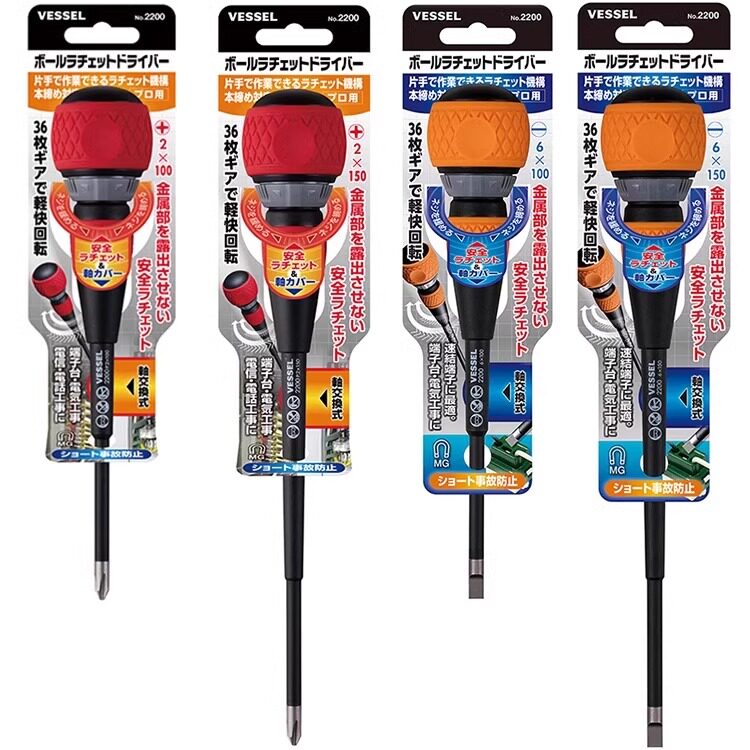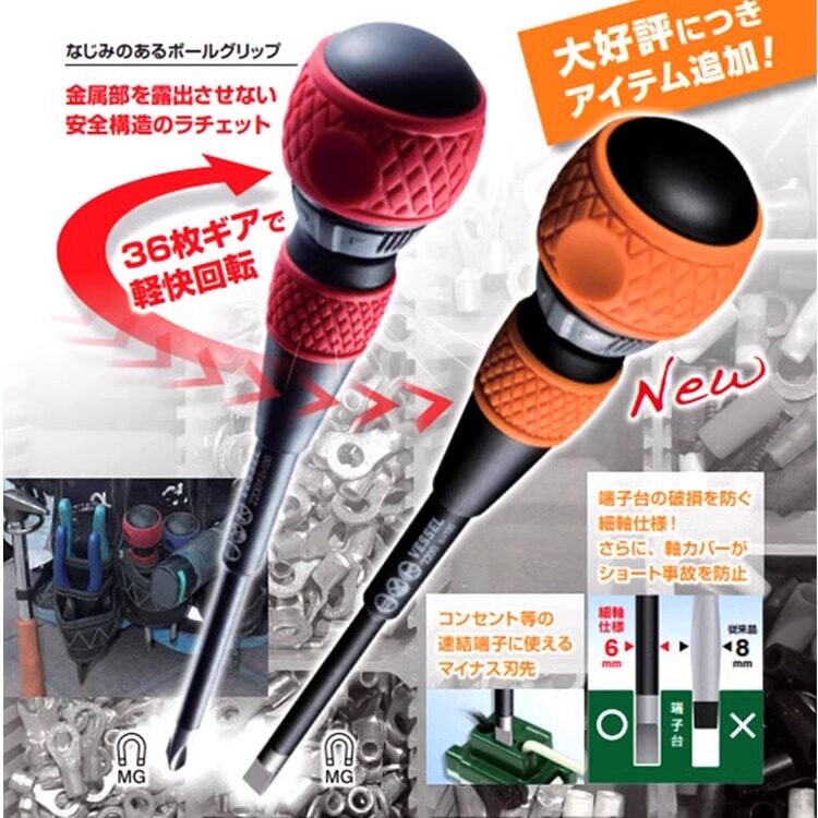 日本VESSEL威威两用螺丝批十字一字棘轮式正反转电工螺丝刀带磁性