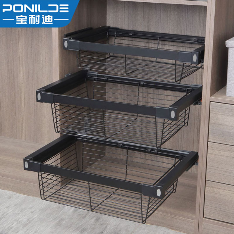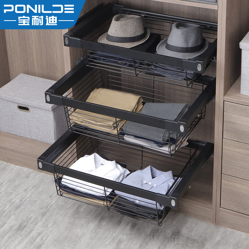衣柜拉篮抽屉式衣帽间抽拉裤架伸缩家用内置滑轨自制裤抽五金配件