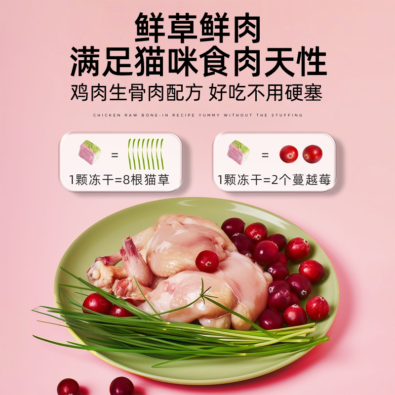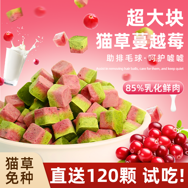 冻干猫草粒蔓越莓猫咪零食宠物羊奶成幼猫化毛鸡肉高钙营养猫草片