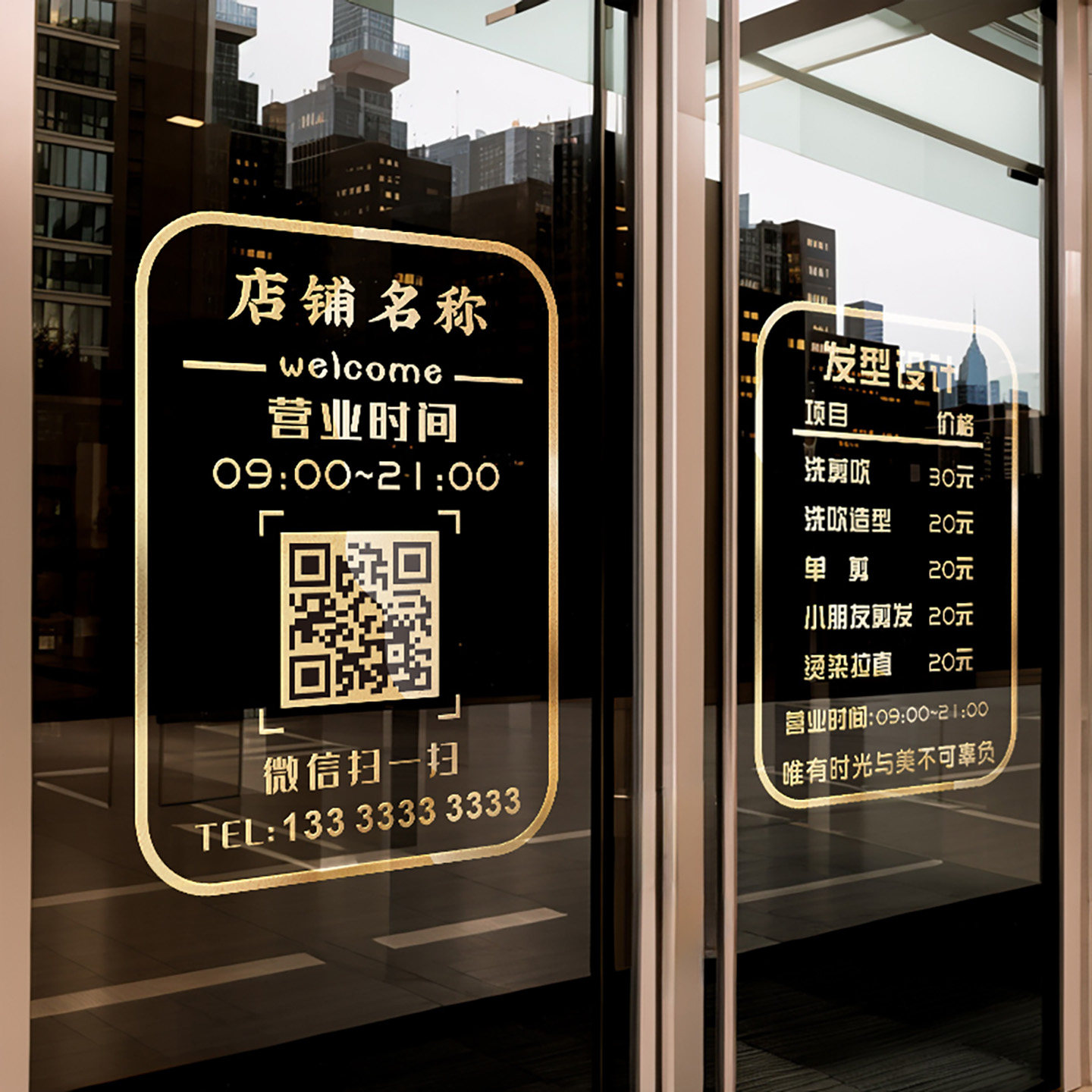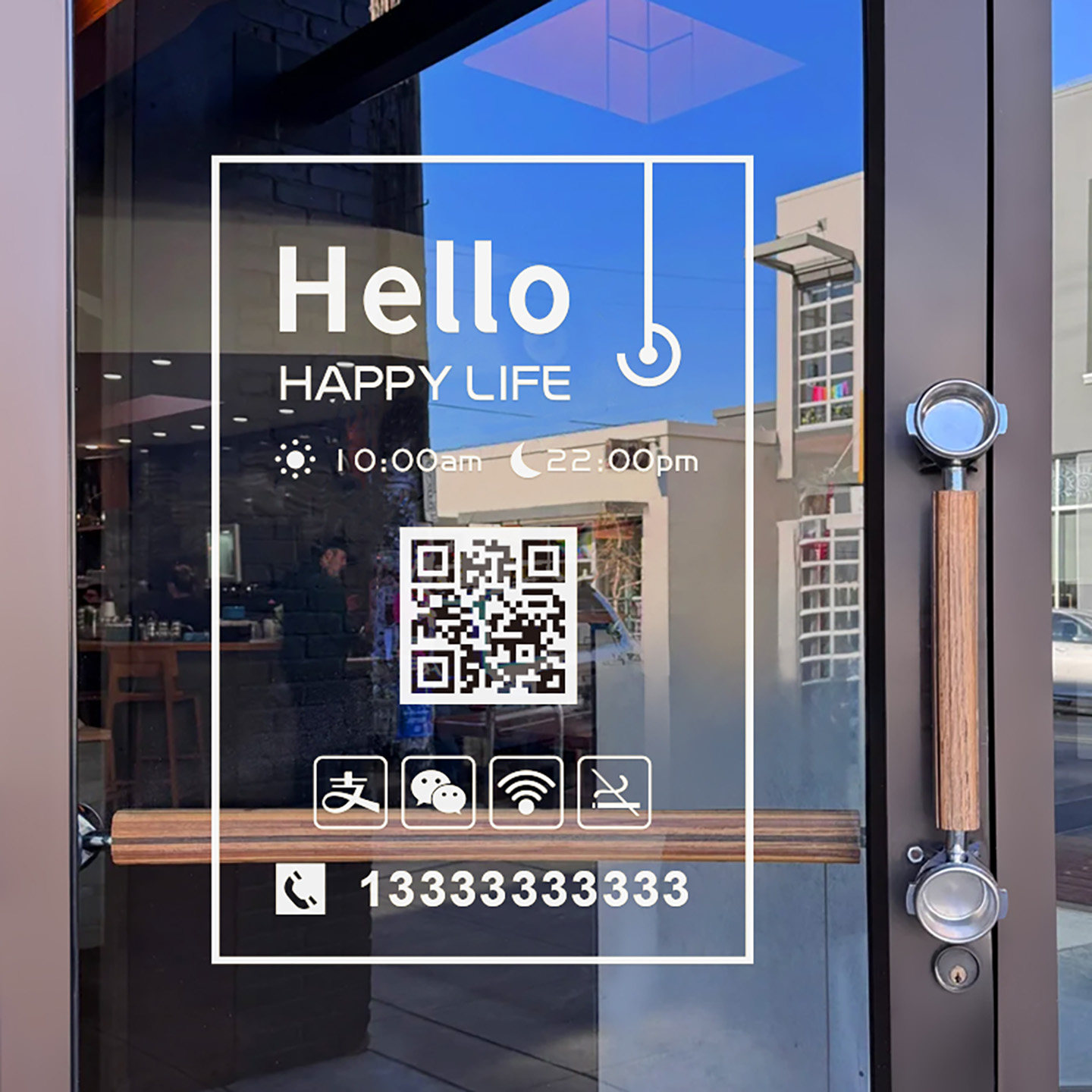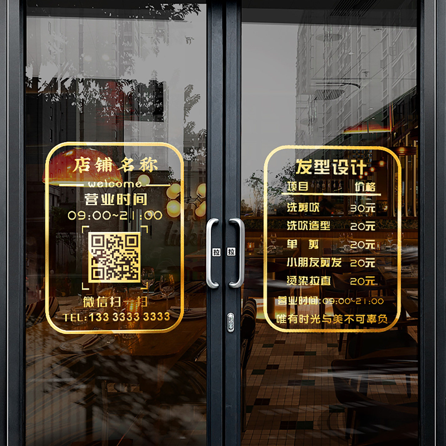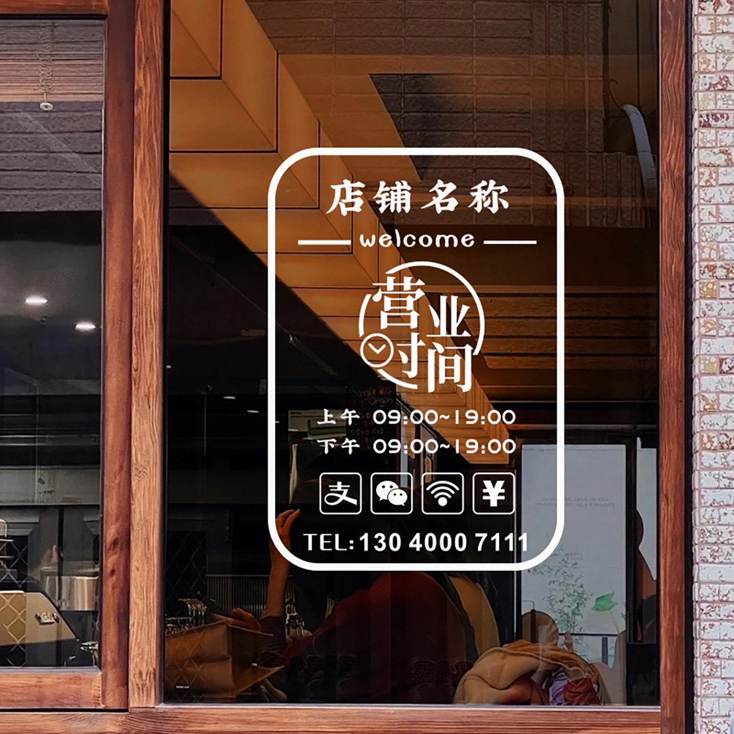 营业时间玻璃门贴纸二维码定制服装店美甲美容院装饰门上广告字
