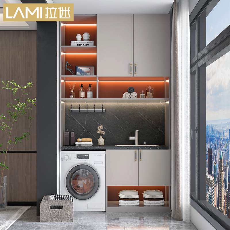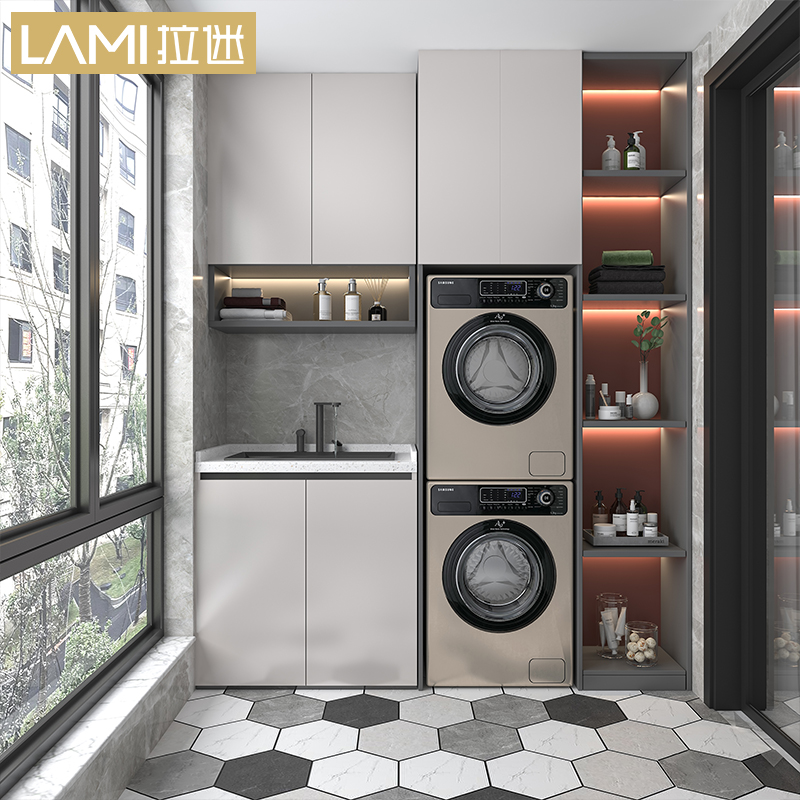 拉迷全屋定制阳台空间整体洗衣机柜装修设计效果图改造茶室小书房