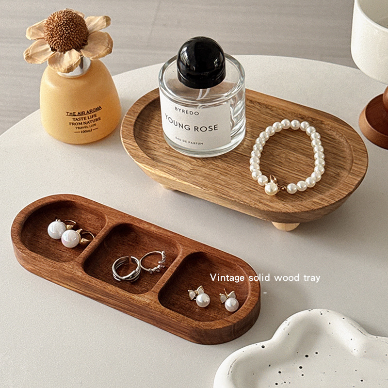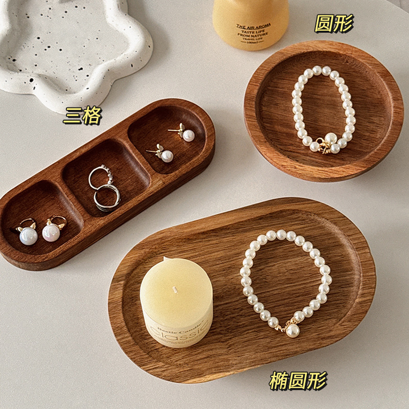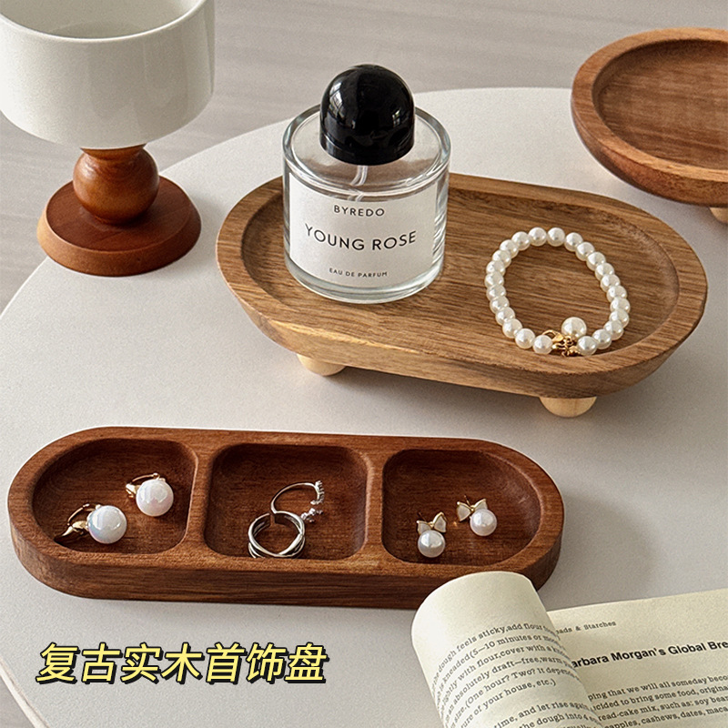 中古木质首饰盘饰品香薰托盘玄关钥匙收纳家居摆件香水放置展示
