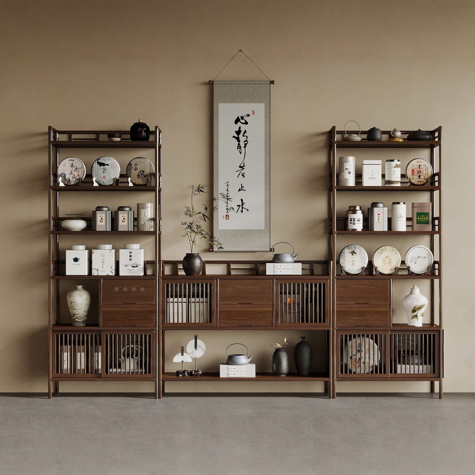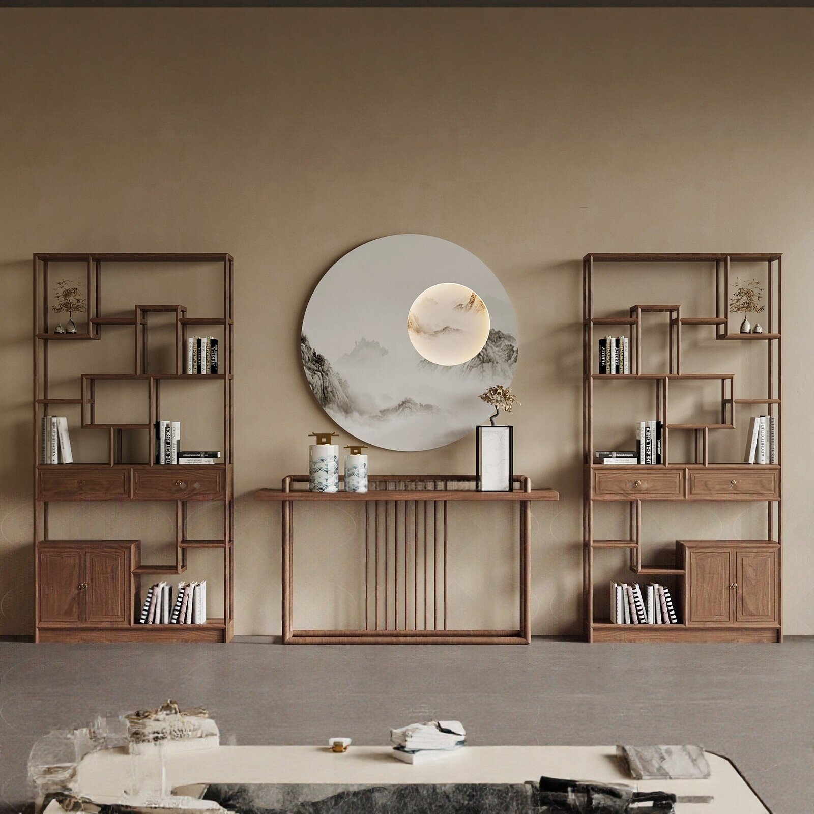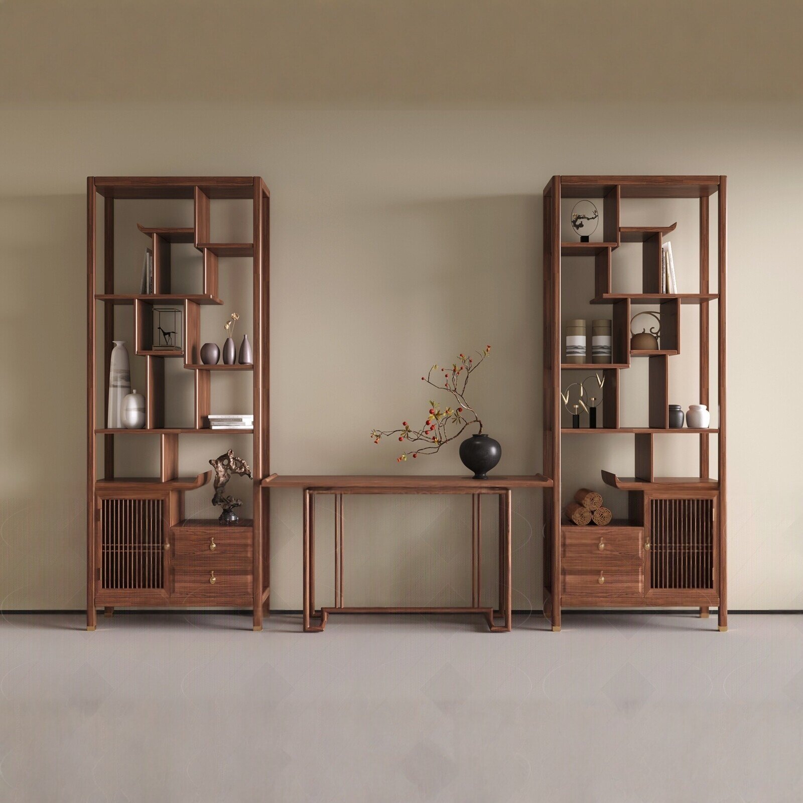 新中式博古架轻奢实木禅意书架简约置物架书柜展示架多宝阁定制款