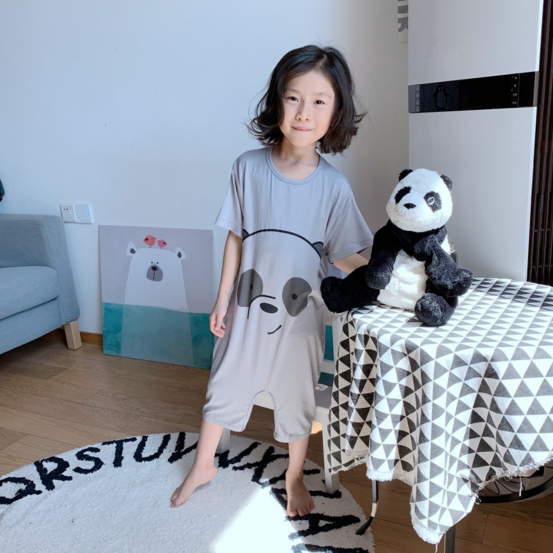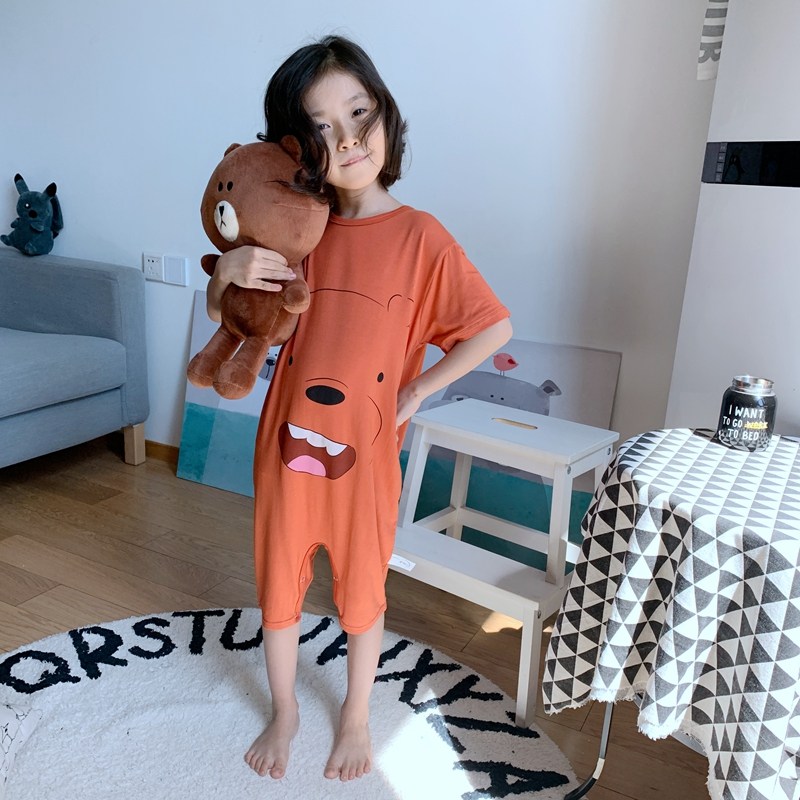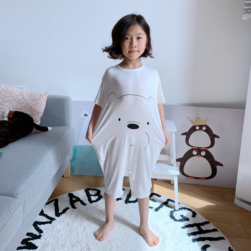 莫代尔儿童连体衣睡衣男童男孩女童薄款大童短袖婴儿宝宝家居服夏